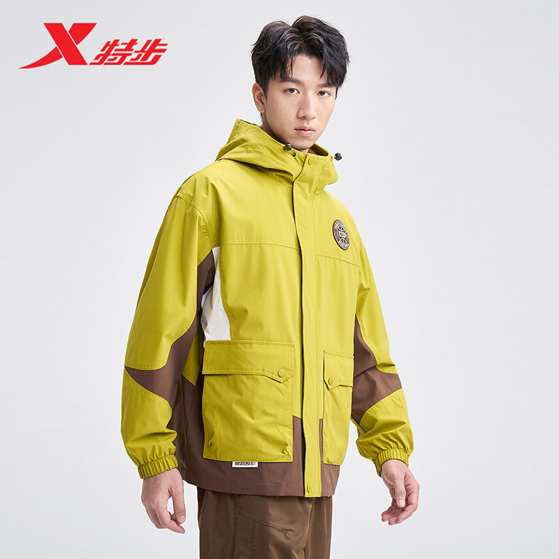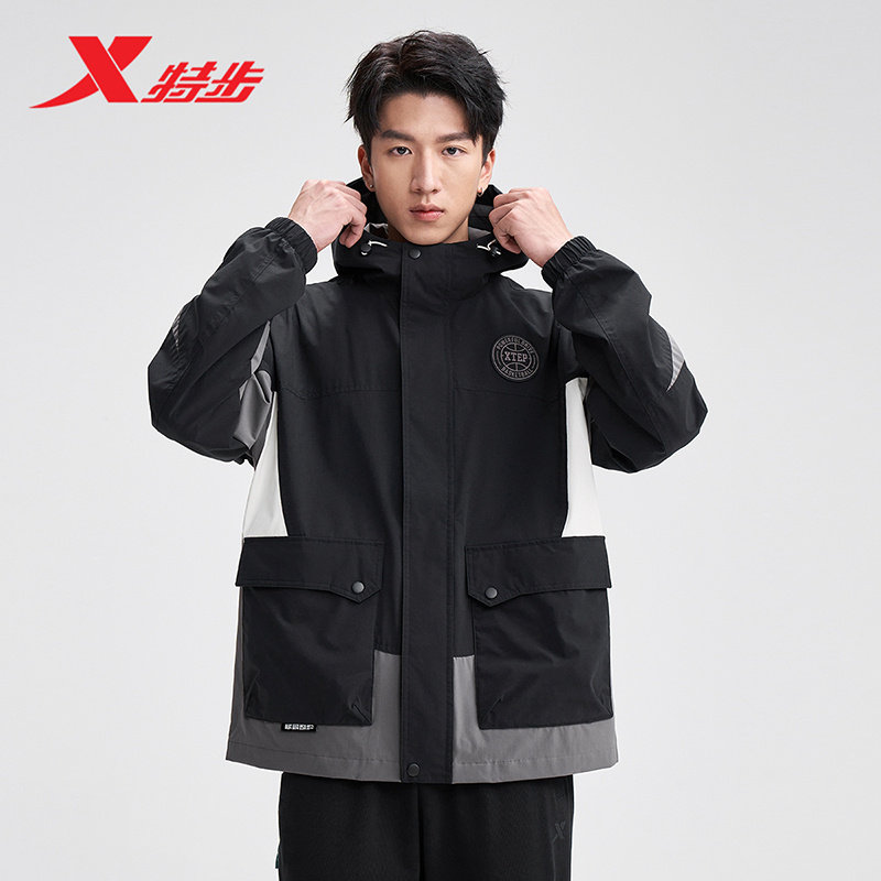 特步男士双层风衣2025秋季新款防风外套连帽防风夹克976329150444