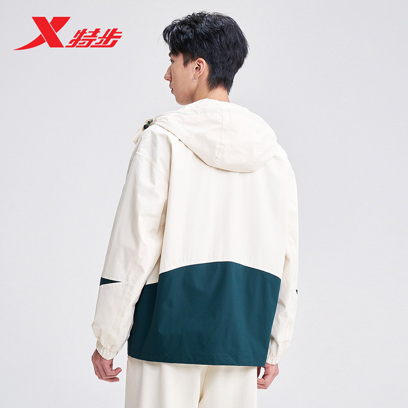 特步运动风衣男款2025秋季新款防风连帽外套休闲夹克976329150287