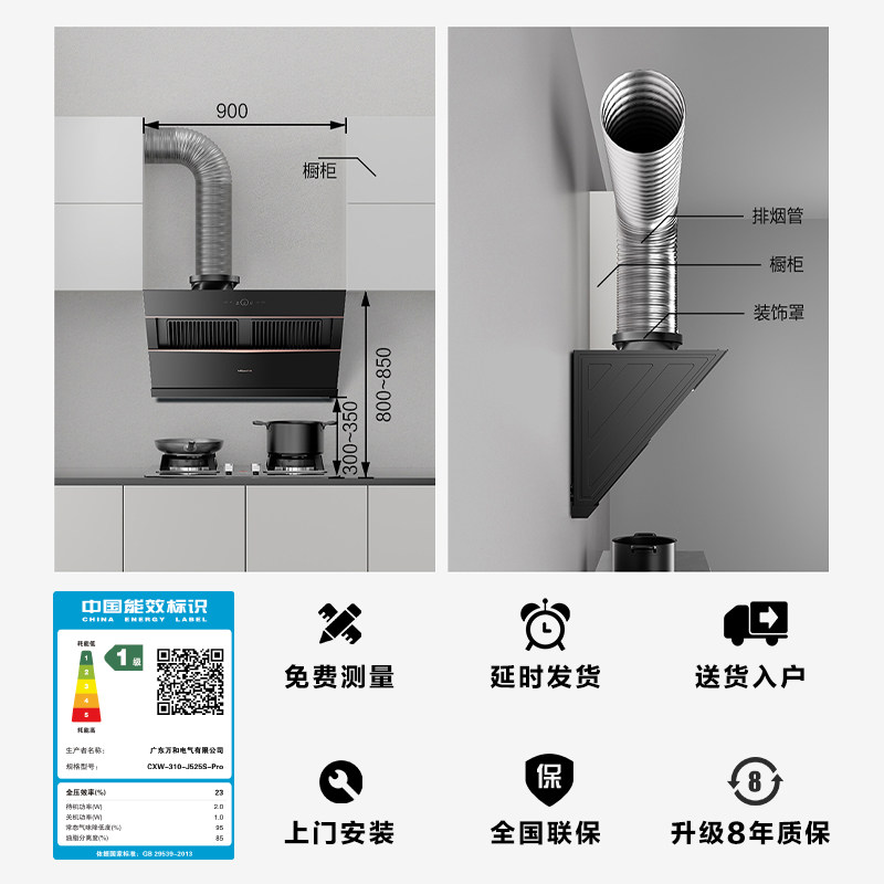 [百亿补贴]万和小双翼家用厨房大吸力侧吸式烟机抽油烟机525PRO