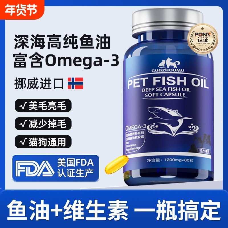 深海鱼油猫咪狗狗专用宠物深海软胶囊猫用美毛犬用三文鱼鱼肝油
