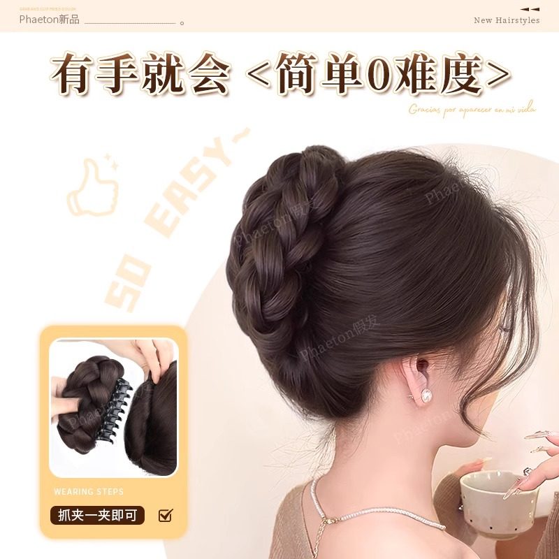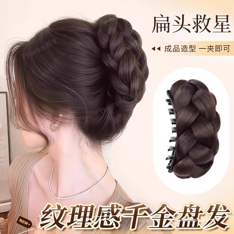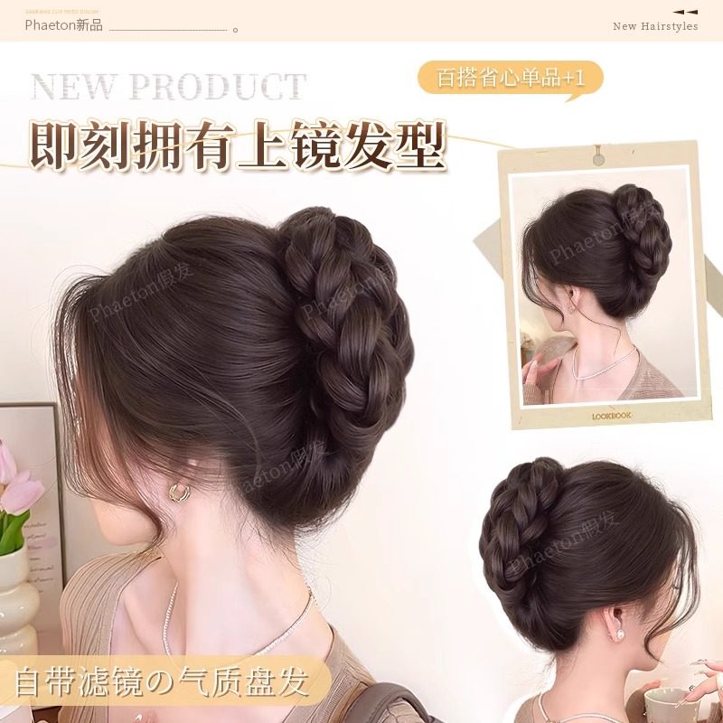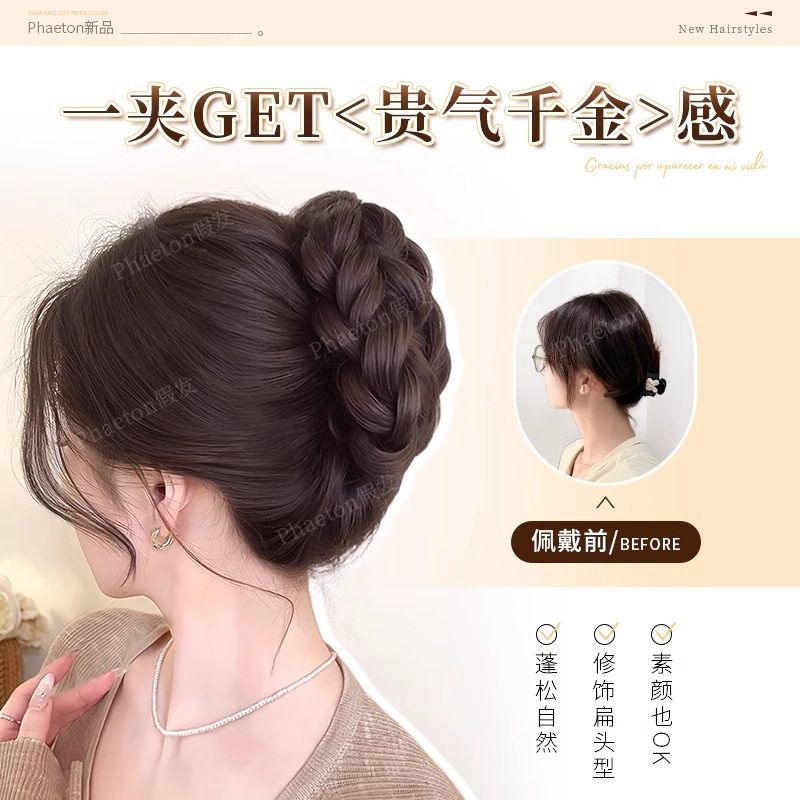 丸子头假发女花苞头抓夹高颅顶盘发神器后脑勺假发包扁头发型麻花