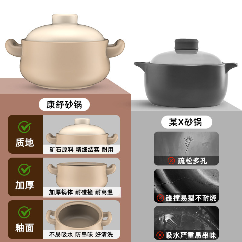 康舒砂锅煲家用耐高温干烧不裂官方旗舰店正品燃气灶专用煲汤沙锅