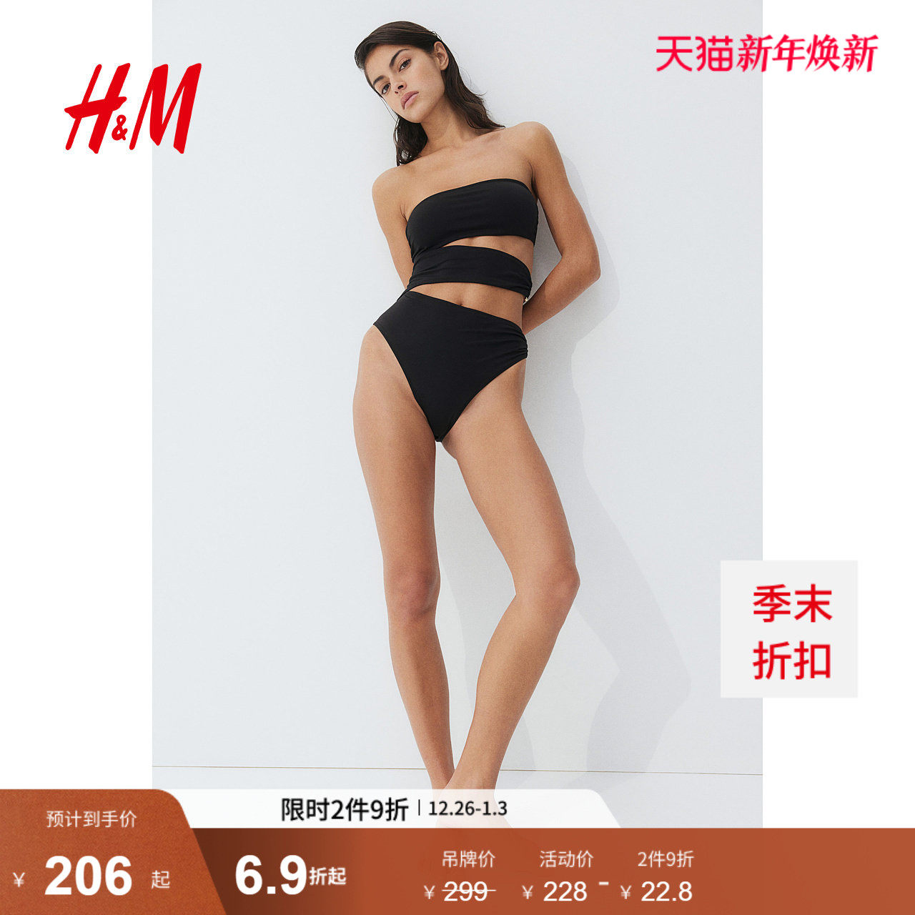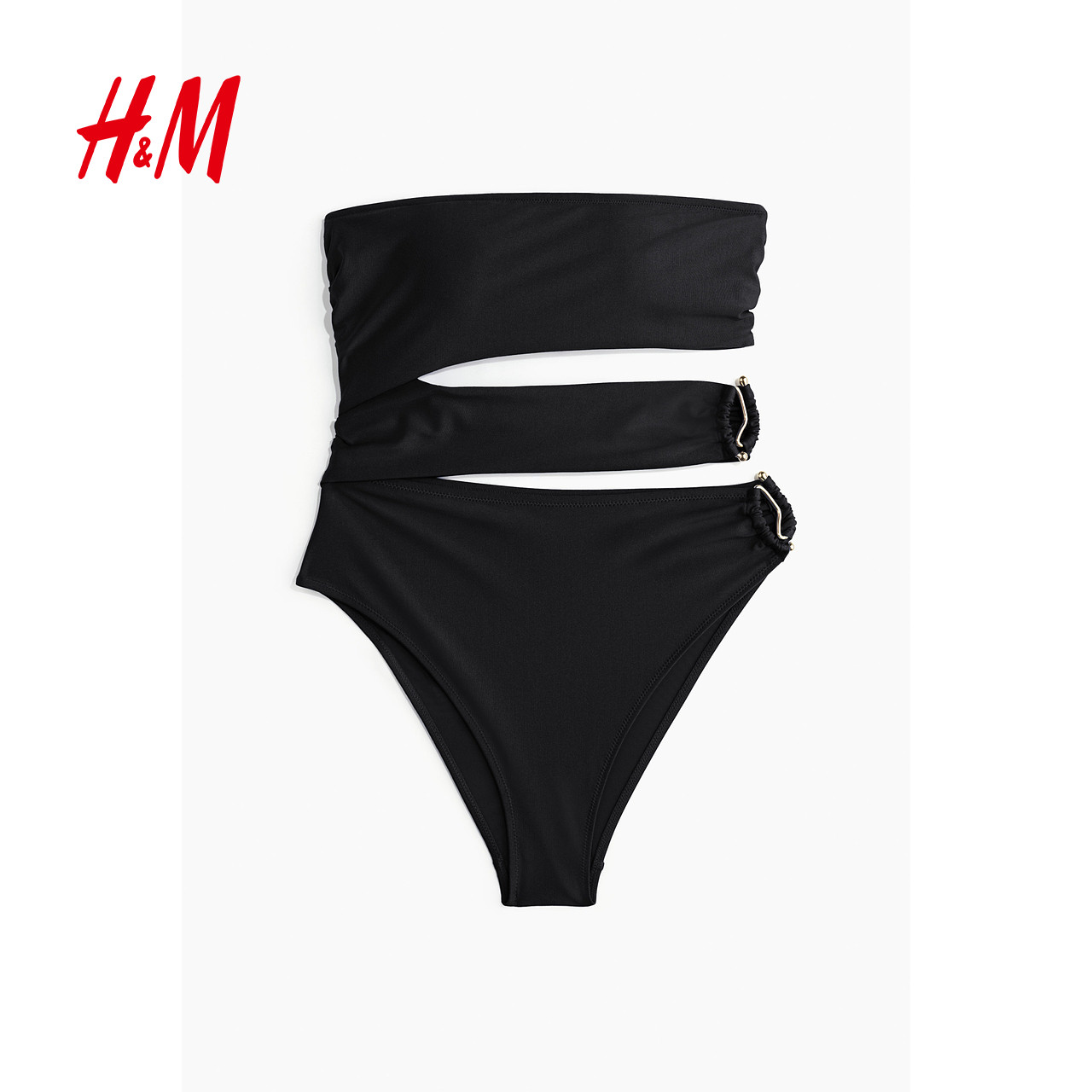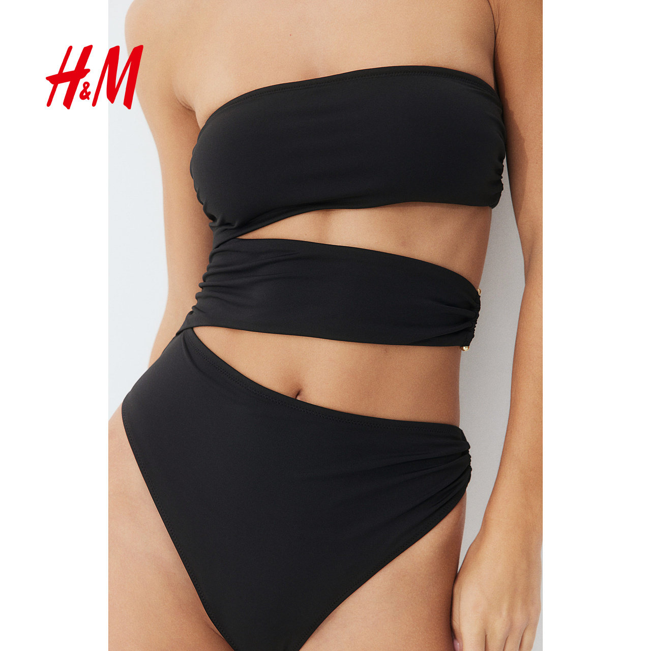HM运动连体衣2025年冬季新款带衬垫罩杯抹胸式连体泳衣1250884
