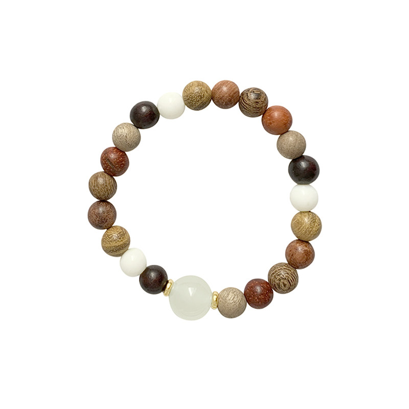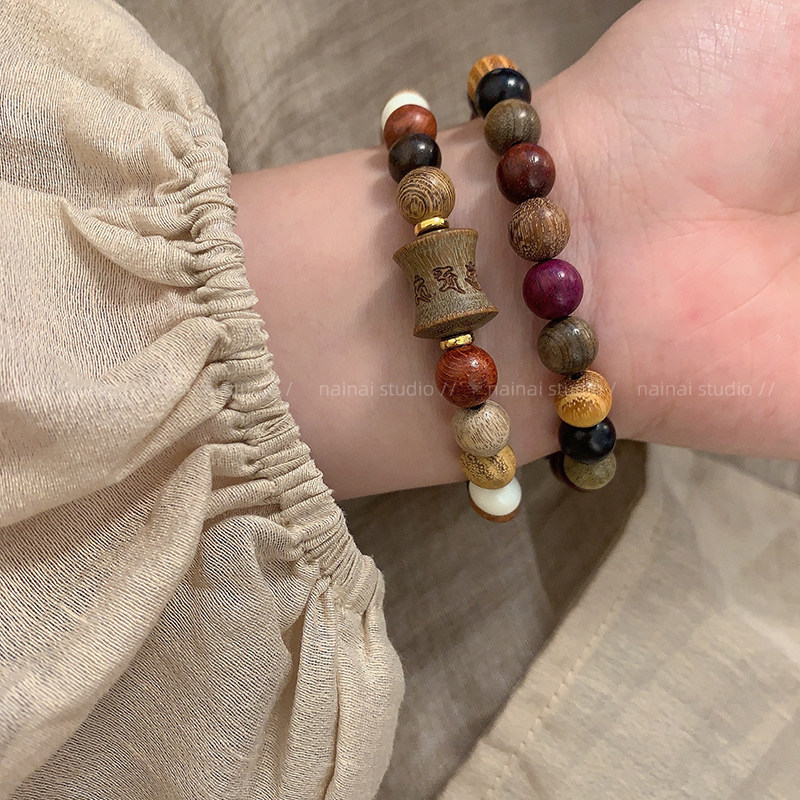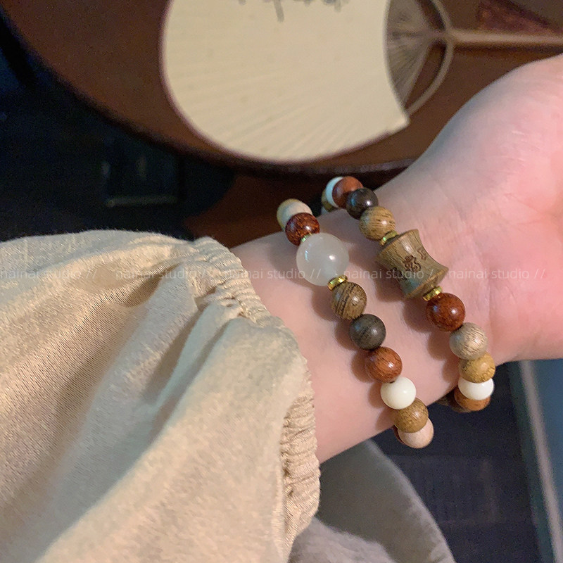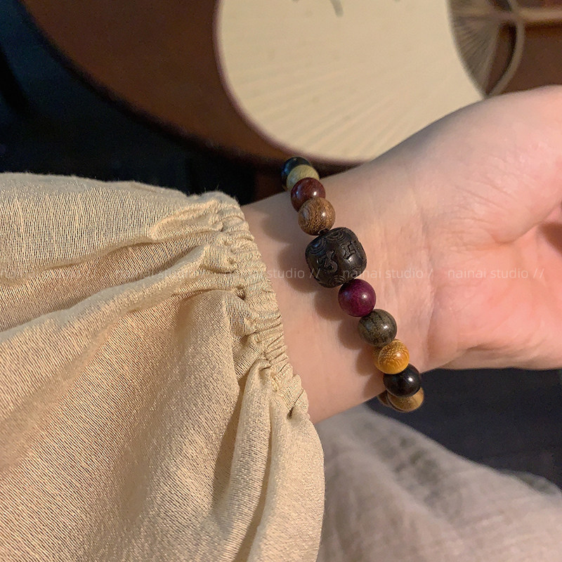 檀木多宝珠手链~新中式民族风串珠六字箴言手饰古风禅意念珠手串