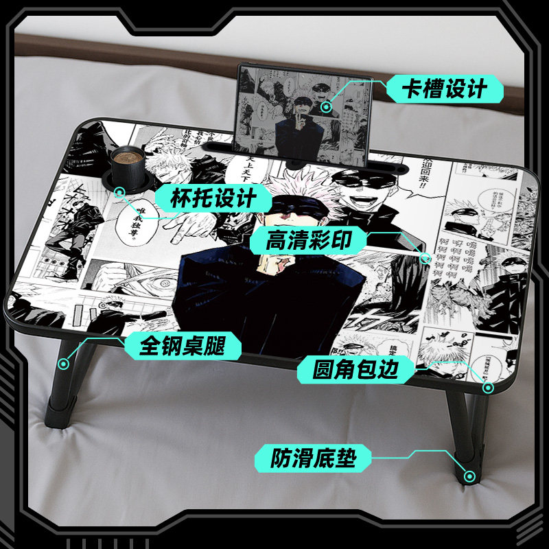 漫画风床上折叠小桌子动漫二次元笔记本电脑桌卧室坐地小桌板电脑台小学生学习桌学生宿舍上铺懒人神器便携式