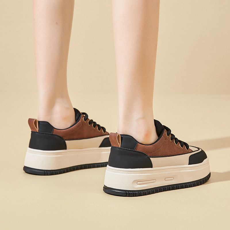 【明星同款】Wander around 复古棕色厚底增高休闲板鞋男女同款