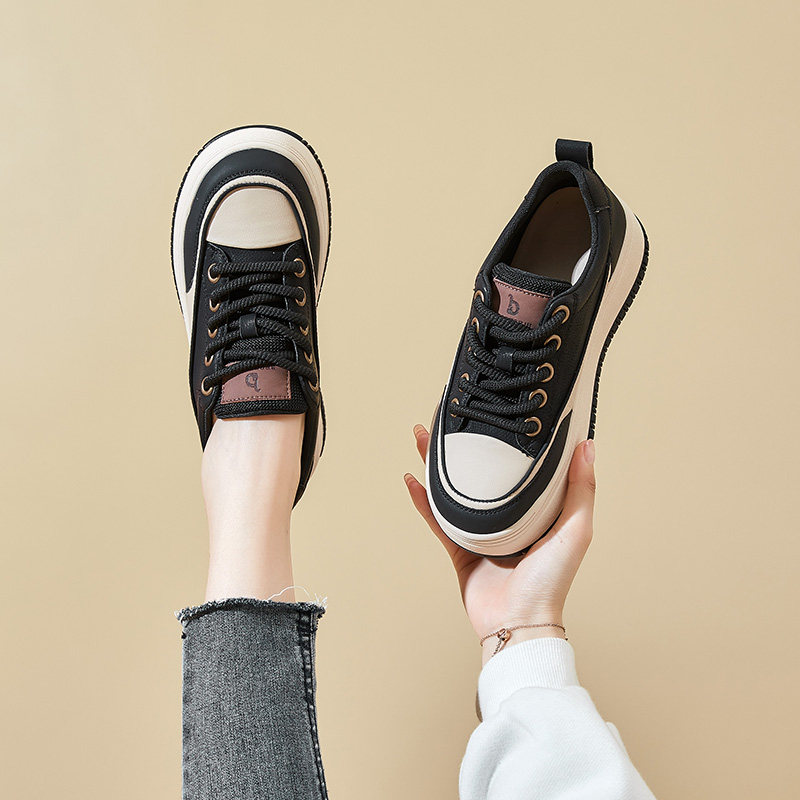 【明星同款】Wander around春秋款黑色厚底增高休闲板鞋男女同款