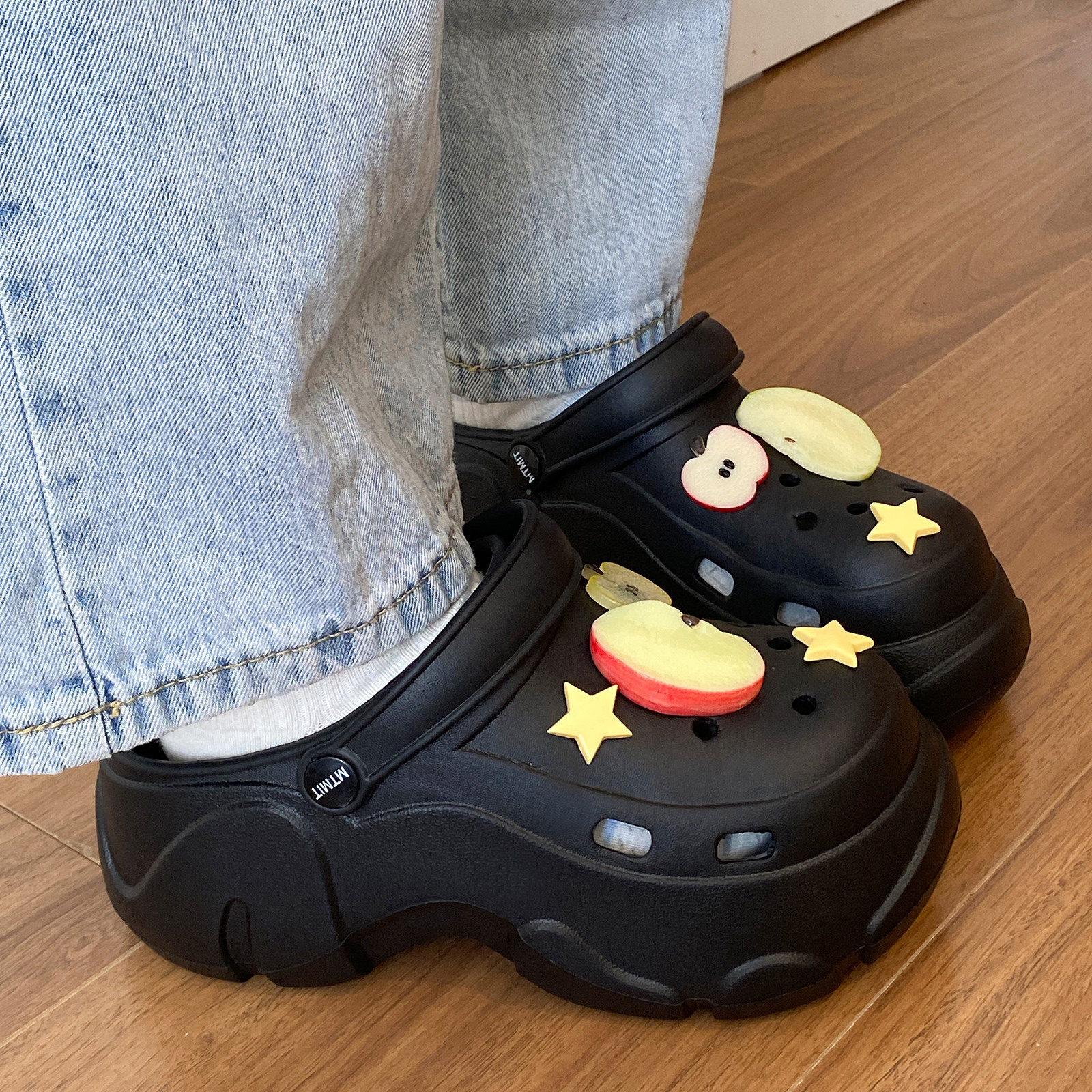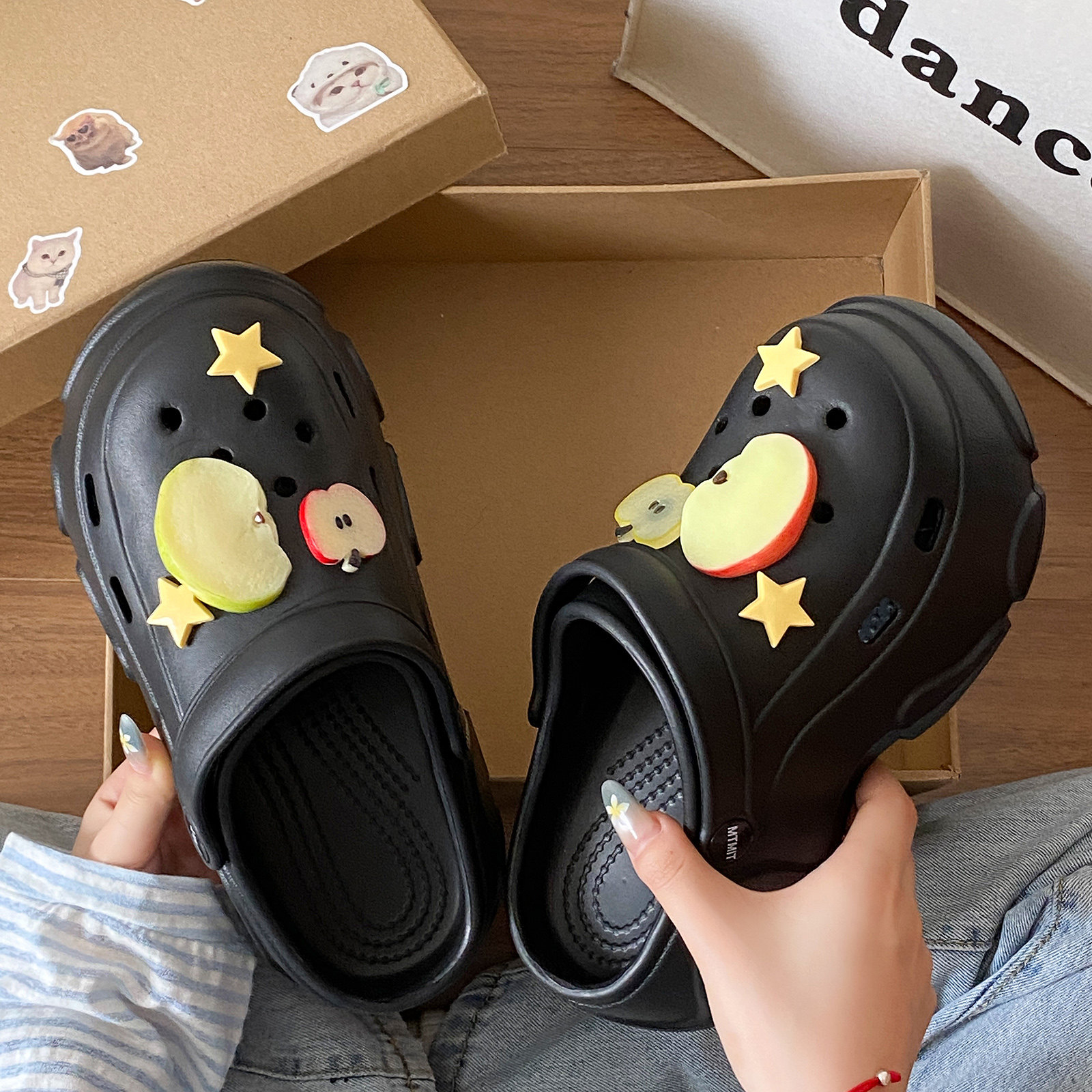 足弓支撑洞洞鞋EVA厚底防滑不臭增高凉拖鞋女学生百搭包头夏季