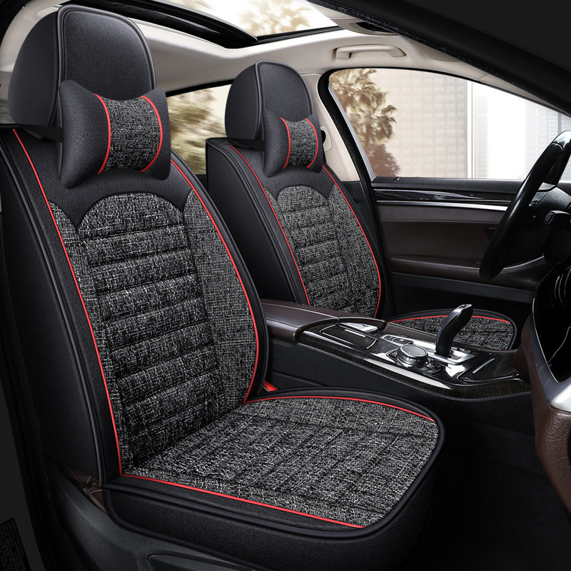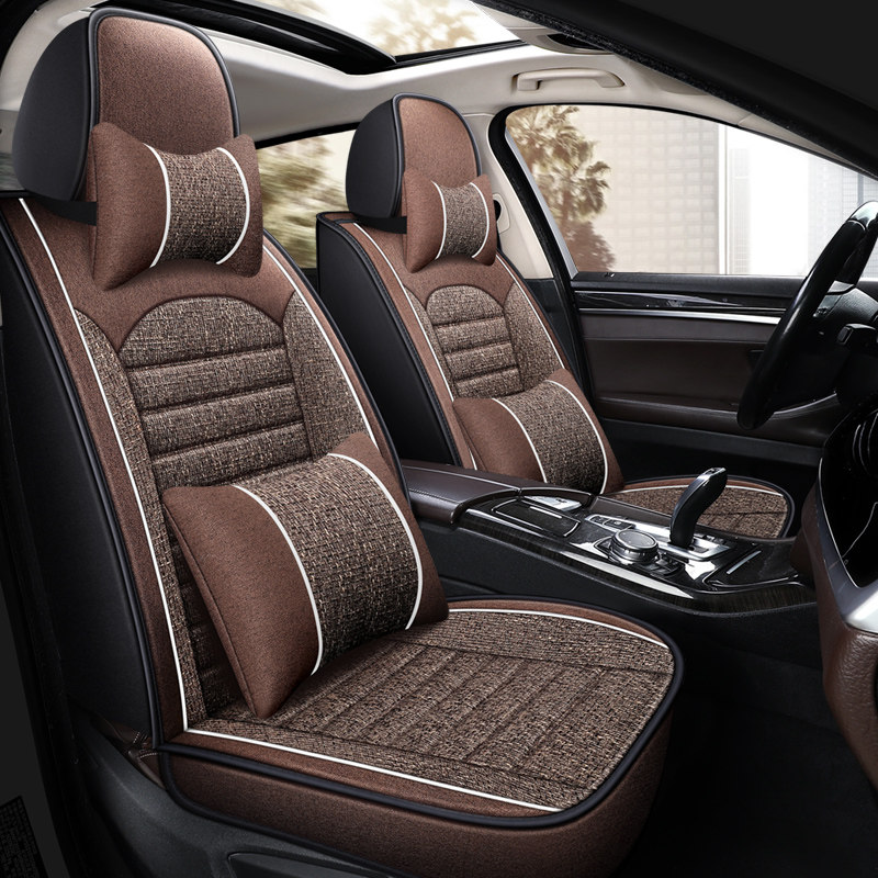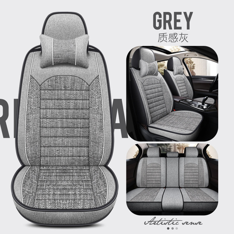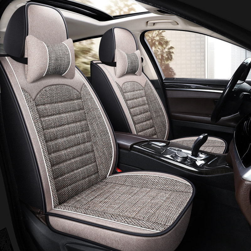 汽车坐垫座套亚麻全包围布艺座位座椅套四季通用坐套专用夏季座垫