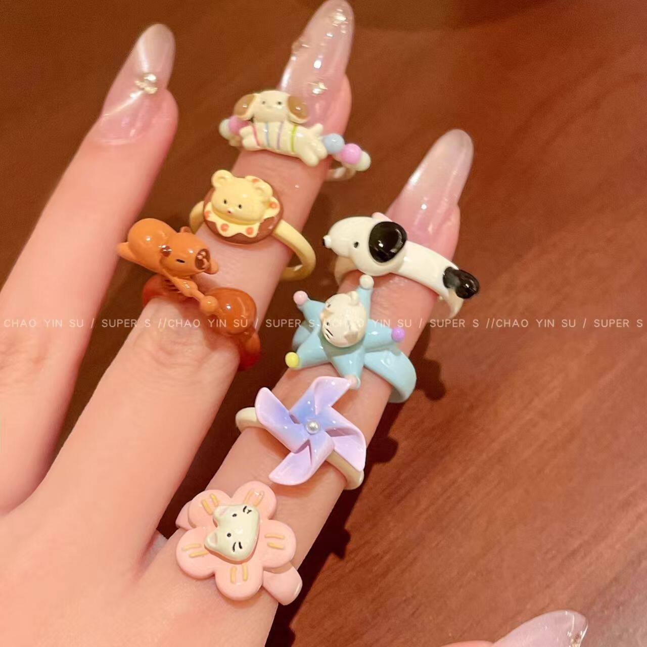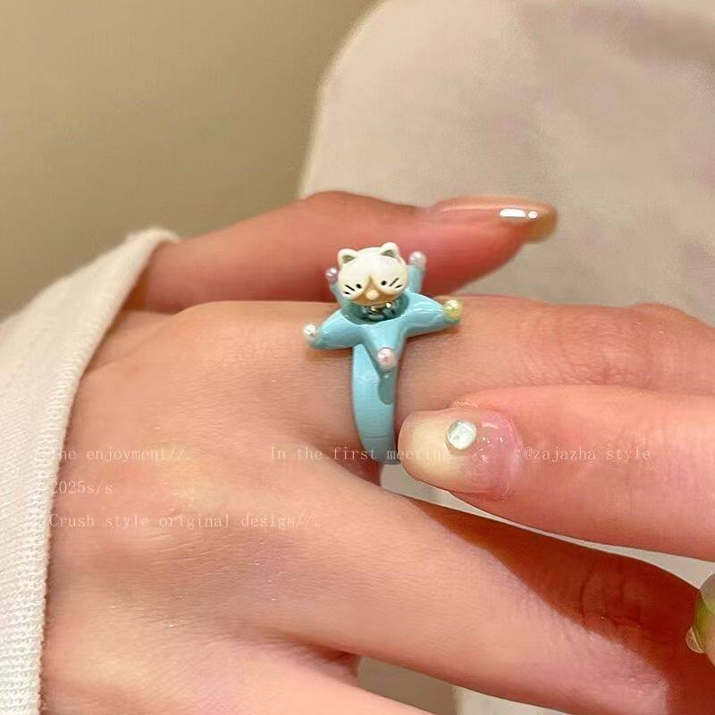 萌宠系列~原创开口小狗猫咪戒指女小众可爱卡通食指戒指环