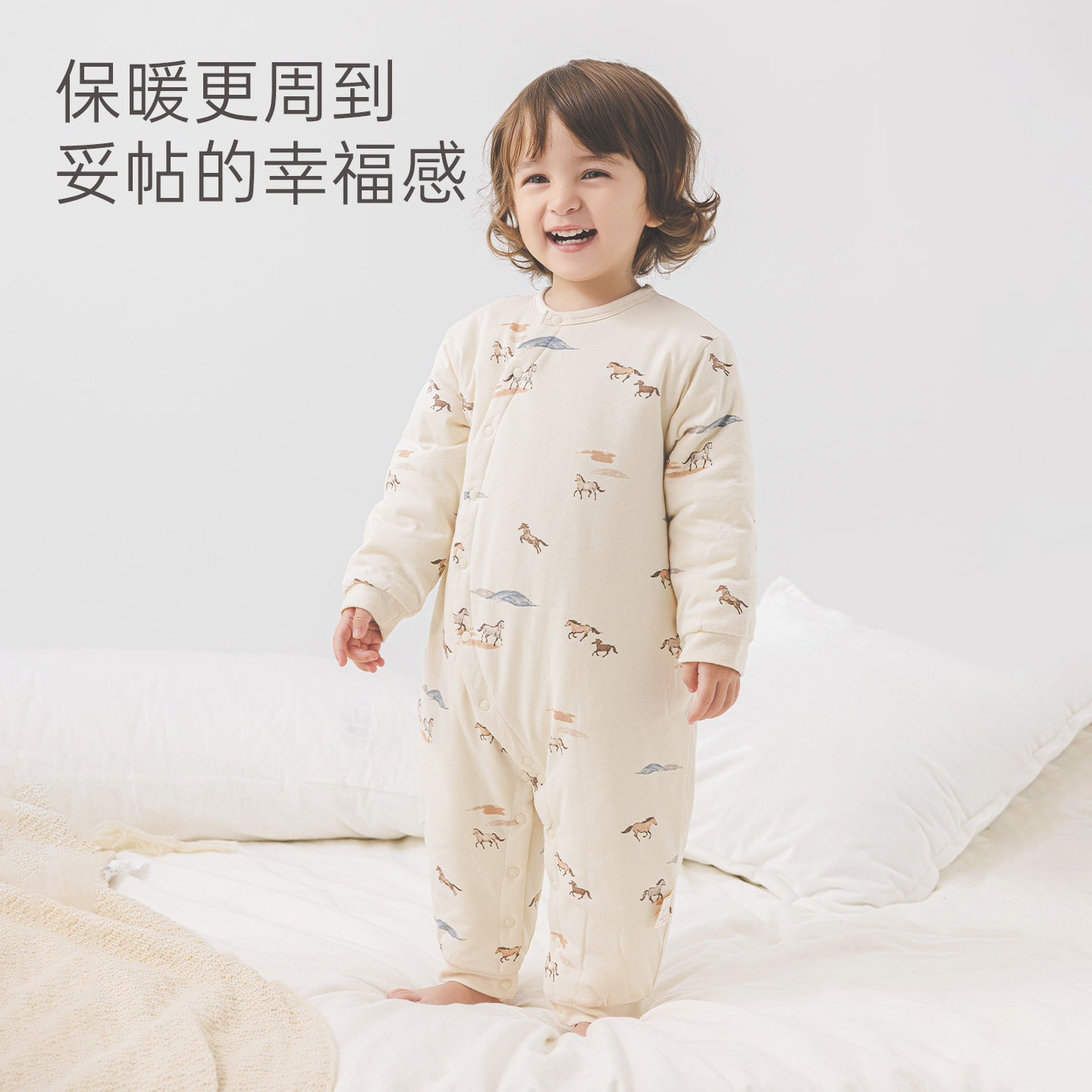 贝肽斯婴儿薄夹棉连体衣冬装外出新生幼儿宝宝衣服保暖空气棉睡衣