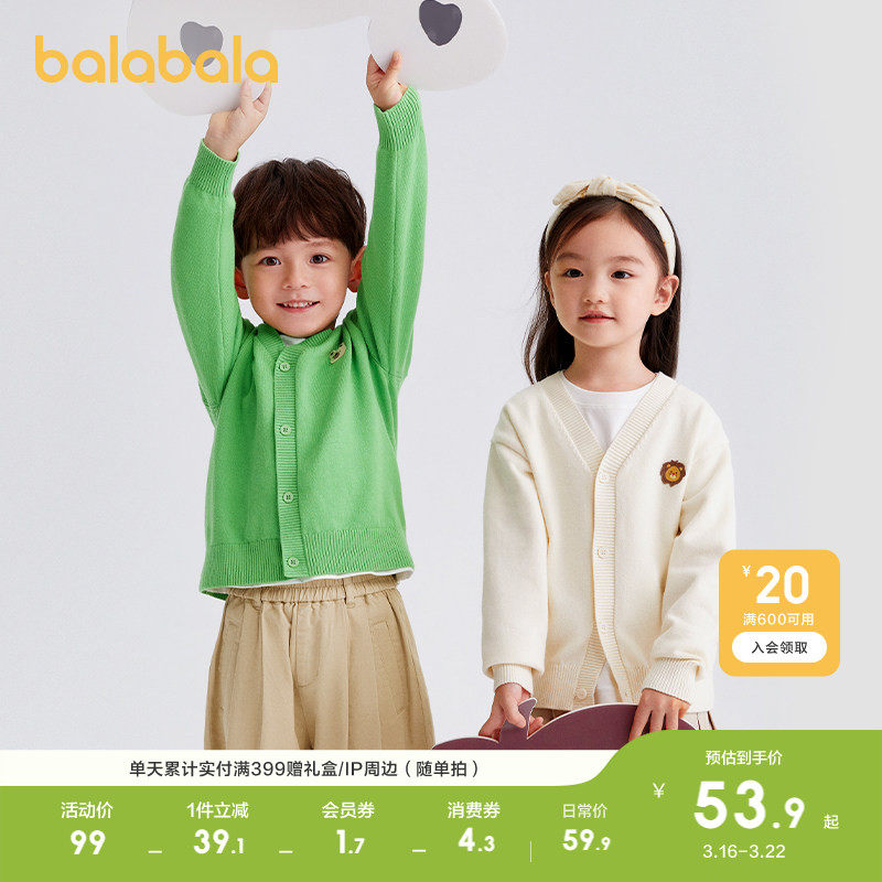 巴拉巴拉童装儿童毛衣男童2026春秋装薄开衫女童针织衫宝宝上衣潮