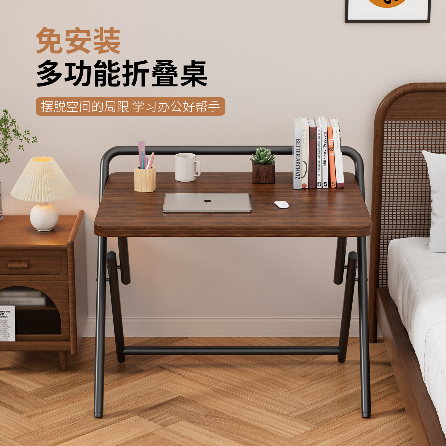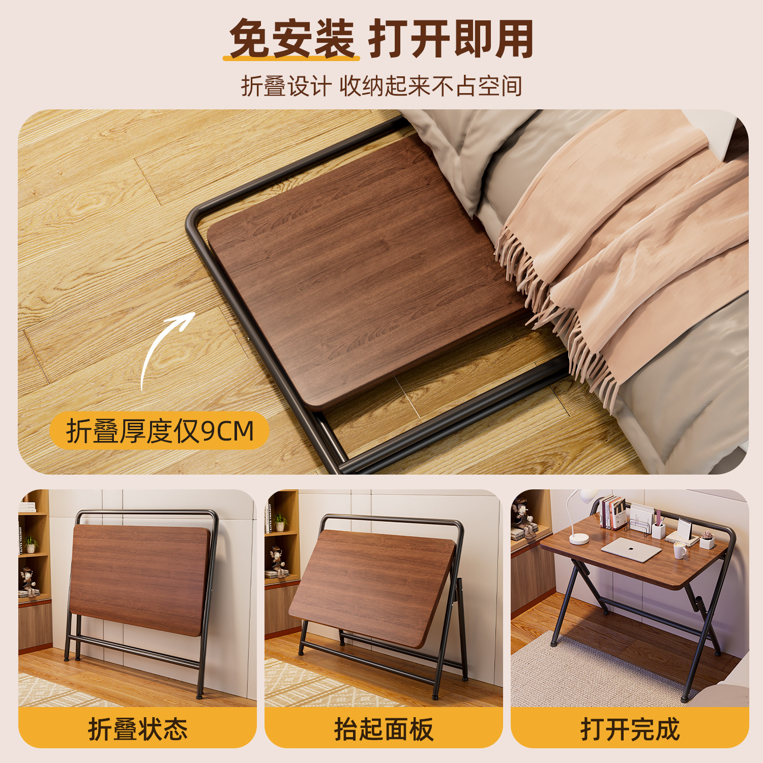 可折叠书桌免安装电脑桌学生家用卧室床边小桌子简易写字桌办公桌