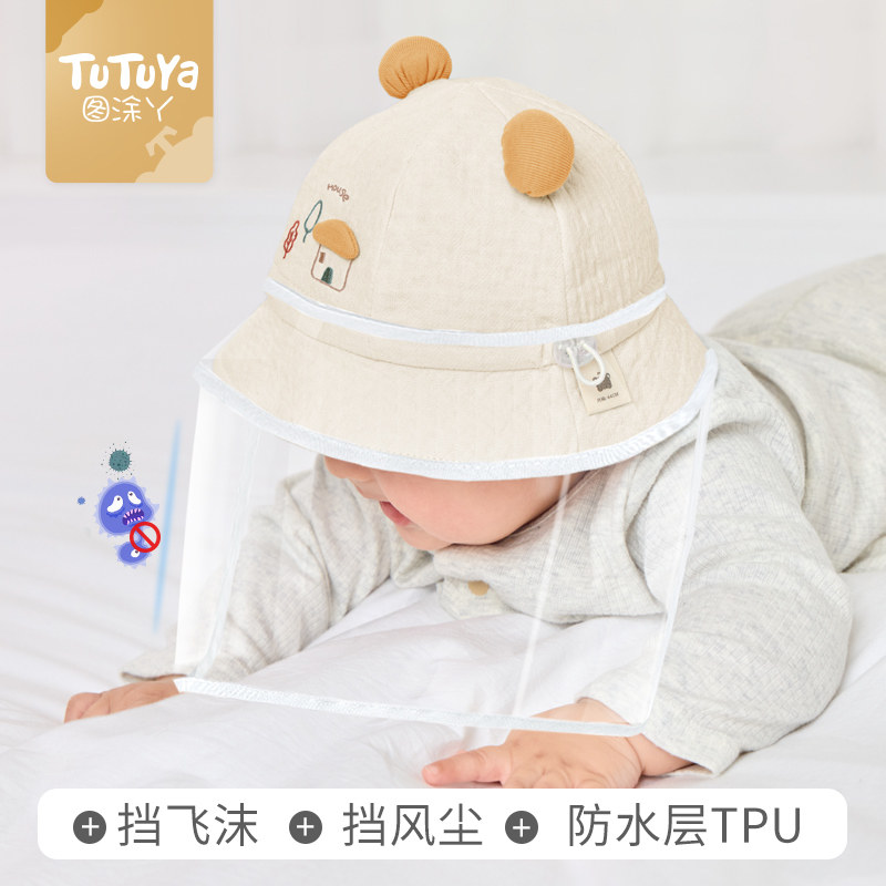 婴儿防护面罩帽子秋冬季新生儿小月龄宝宝防飞沫婴幼儿外出打疫苗
