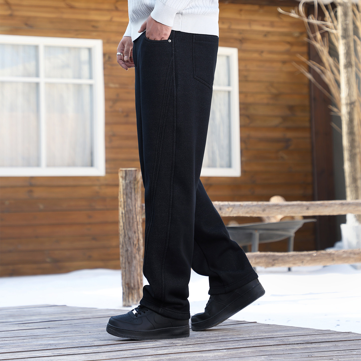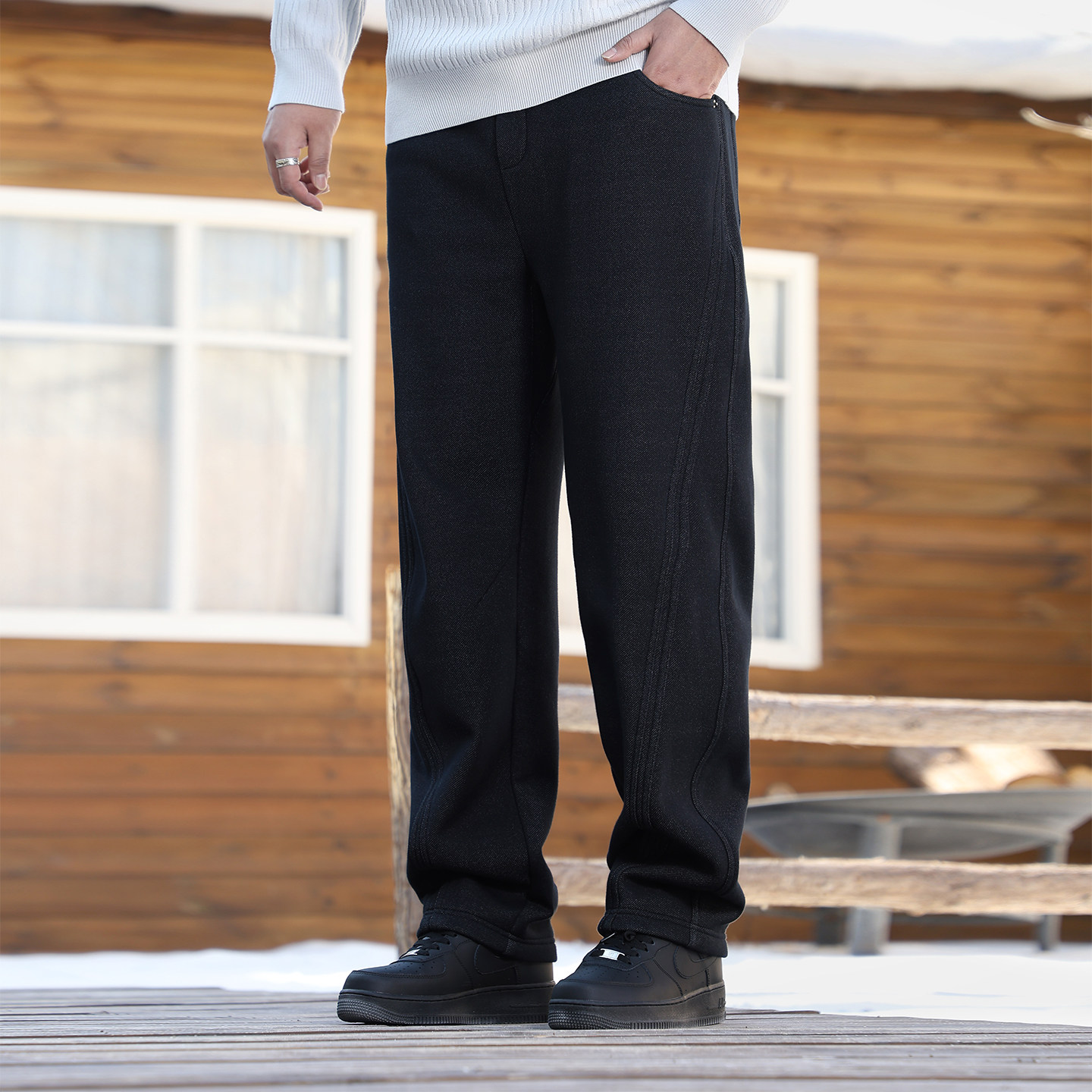 黑劲大码男装加绒直筒裤冬季新款加厚保暖胖子菱形裆宽松休闲长裤