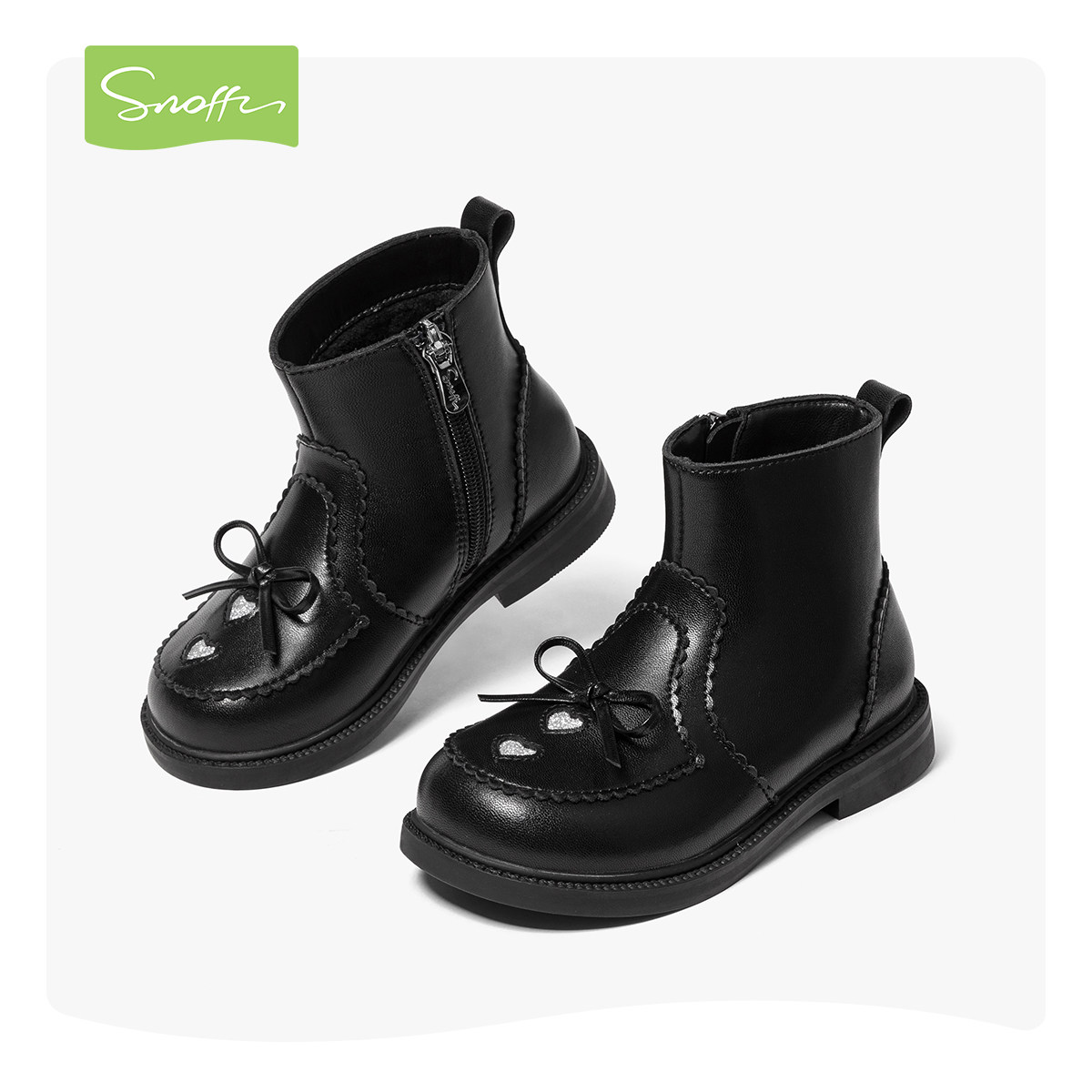 斯纳菲女童皮靴加绒保暖时尚短靴