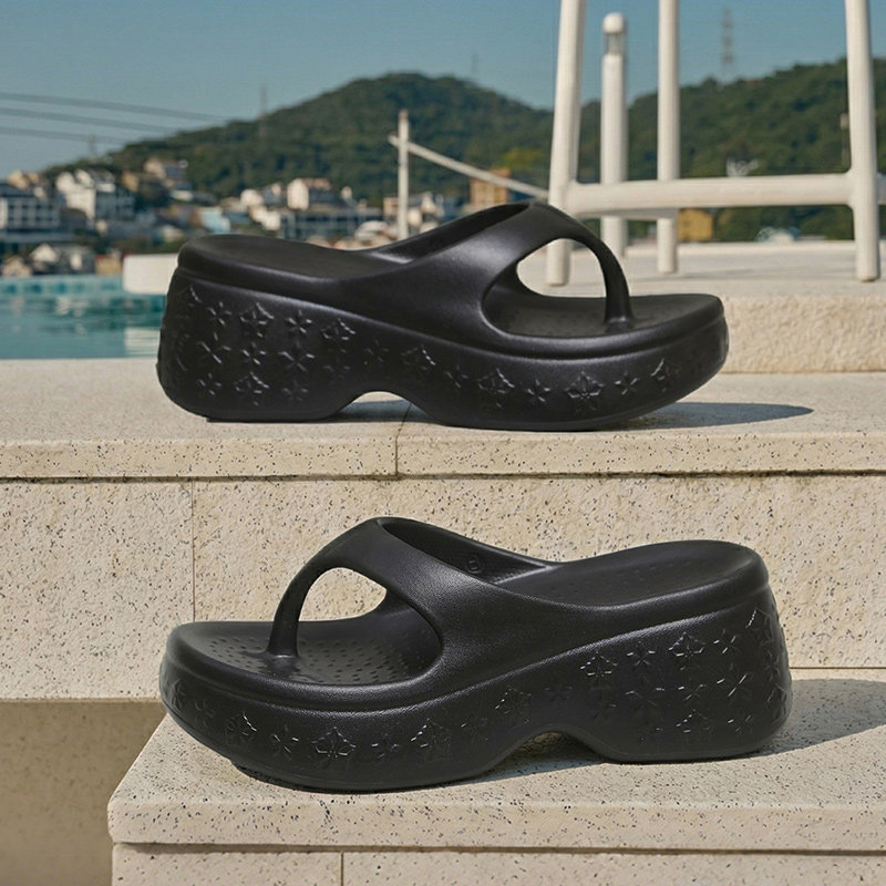 赵露思同款TraparWaves厚底夹脚拖鞋人字拖家黑色高跟坡跟防滑