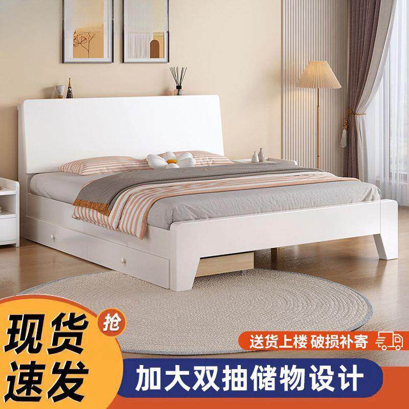 新款实木床家用1.8米双人床1.5简约现代1.2m北欧风单人床板床