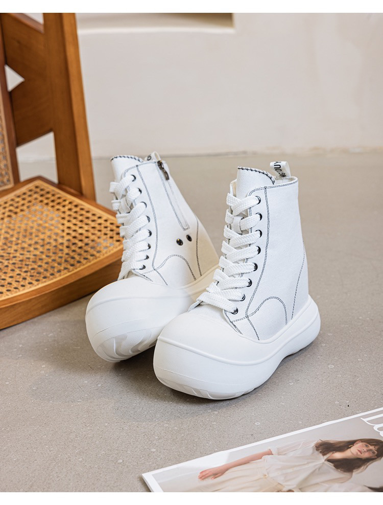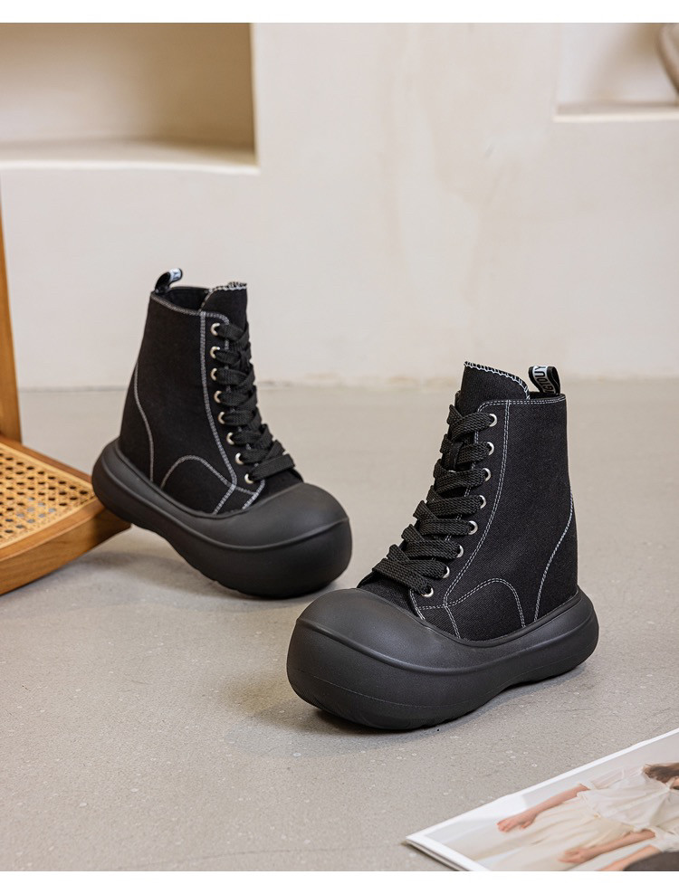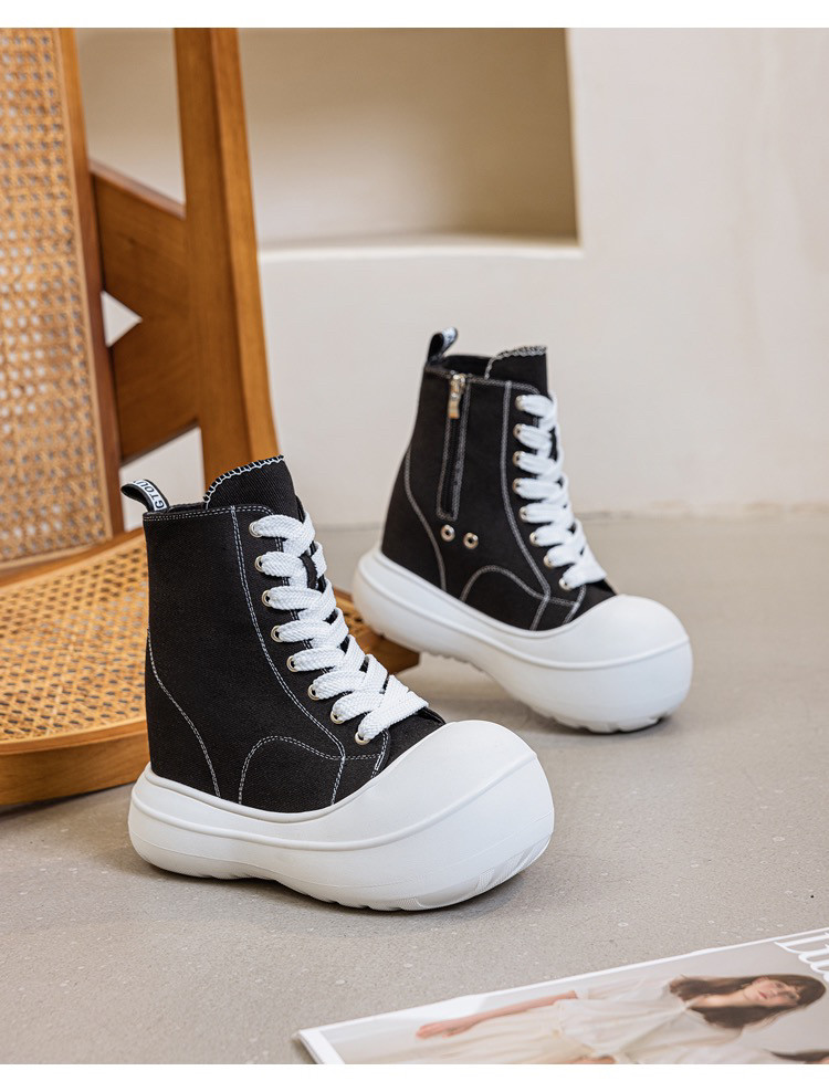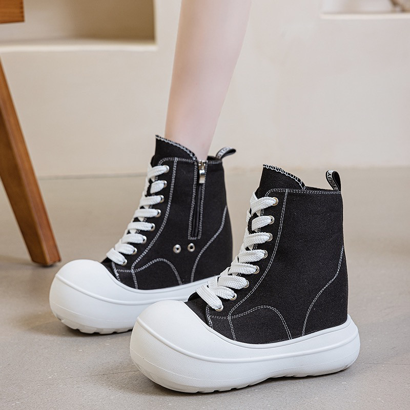 13CM内增高女鞋厚底大头帆布鞋女2026春季新款百搭高帮休闲松糕鞋