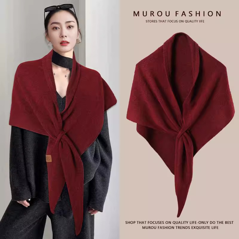 三角围巾女秋冬护颈保暖围脖大披肩外搭红色灰色黑色白色薄款酒红