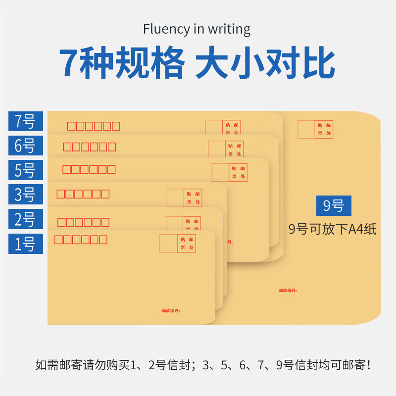 白色双胶纸信封、黄色牛皮纸信封1-9号可选