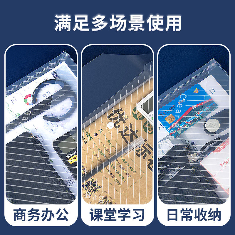 广博A4文件袋透明塑料加厚大容量按扣试卷收纳袋小学生用档案资料袋文件夹包考试文具小学生商务办公用品袋子