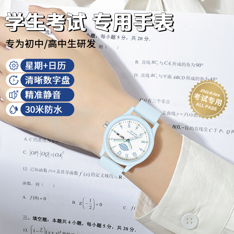 Dickies手表男女学生初高中考研静音儿童只看时间公务员考试专用