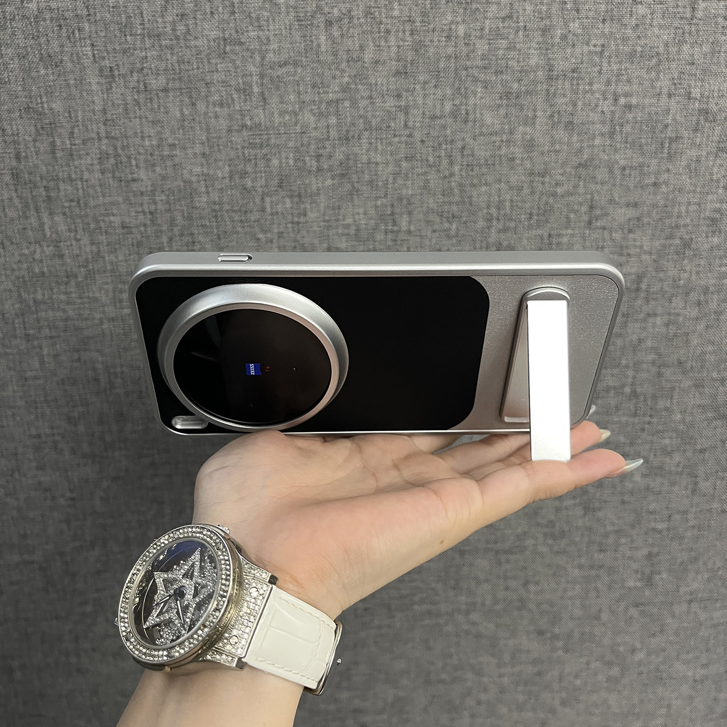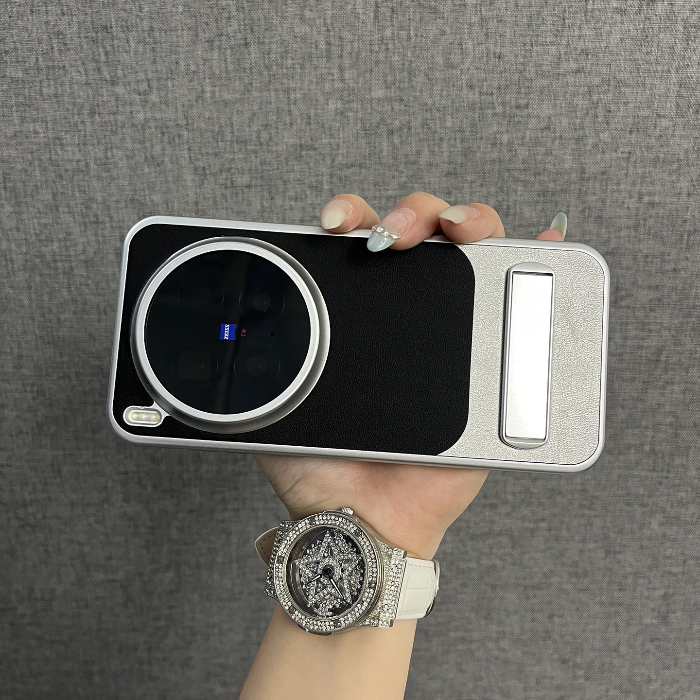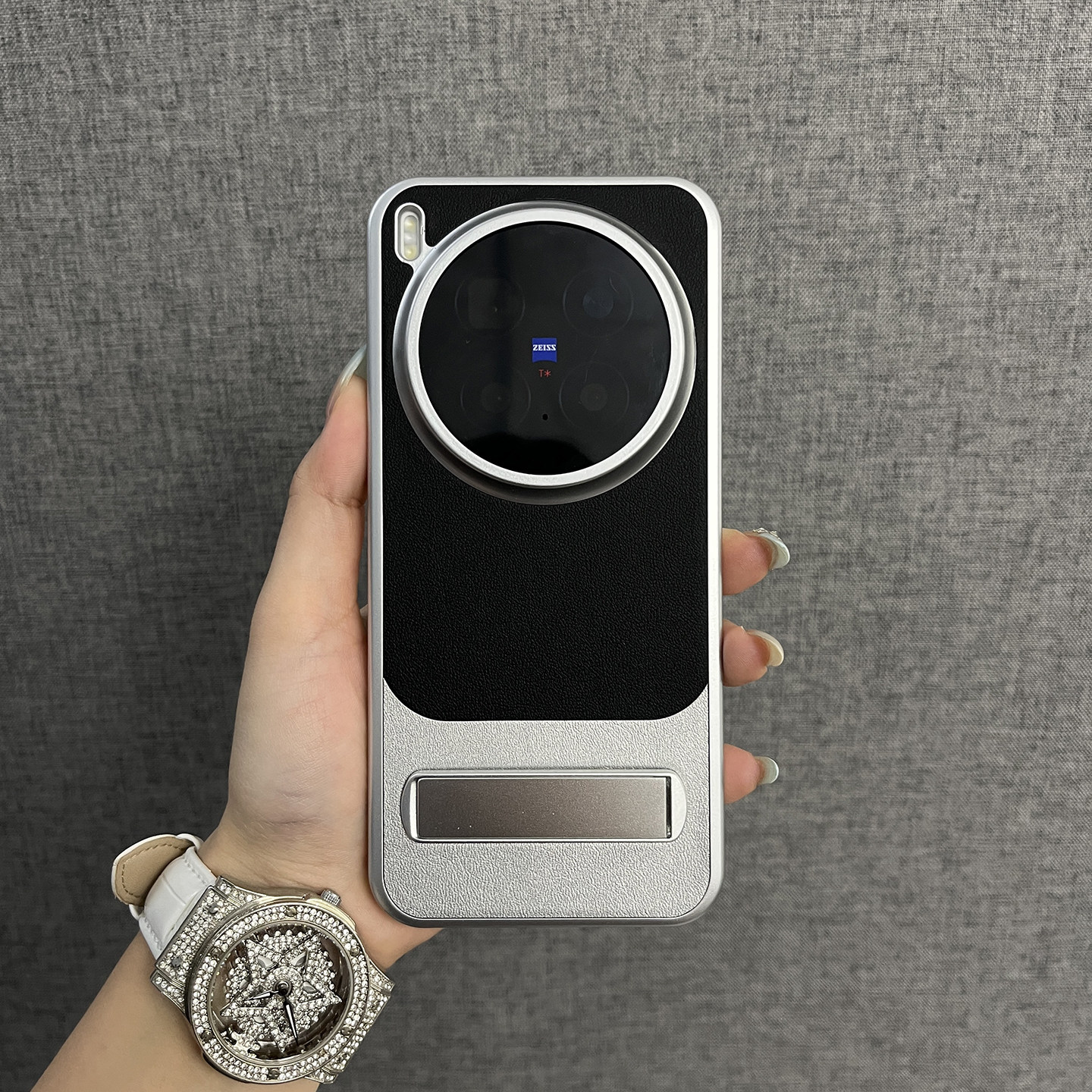 三只鱼【潮牌素皮纹支架石墨黑】适用vivox300pro/vivox200ultra手机壳新款电镀高档个性防摔半包保护套男女