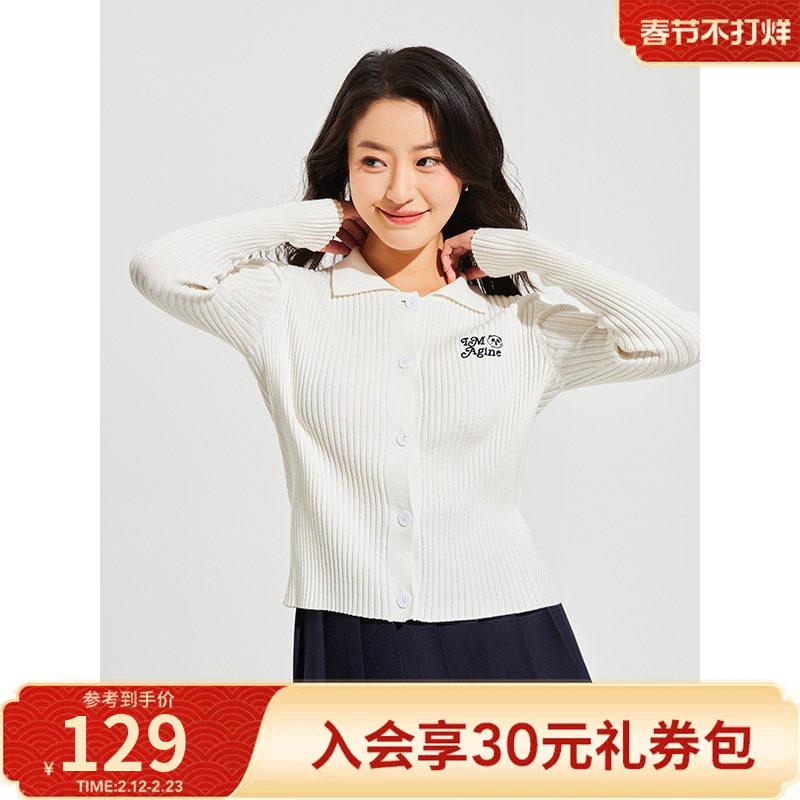 【熊猫设计师系列】热风2025年春季新款女士卡通翻领修身针织开衫