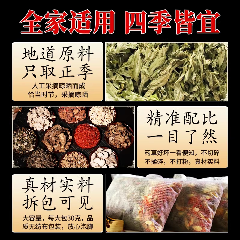 泡脚药包去湿气排毒助睡眠艾草叶生姜花椒红花中药非祛湿寒足浴包