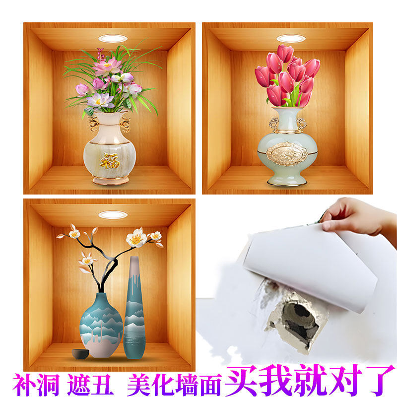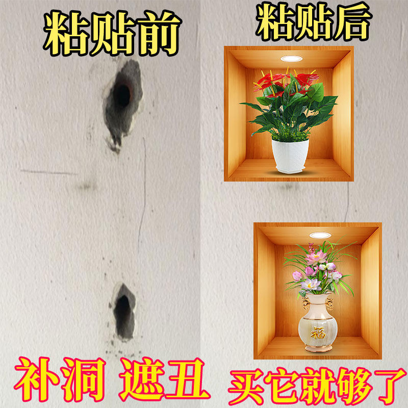 仿真3d自粘墙贴画瓷砖墙壁瑕疵遮挡装饰画客厅盆栽贴画玻璃贴纸画