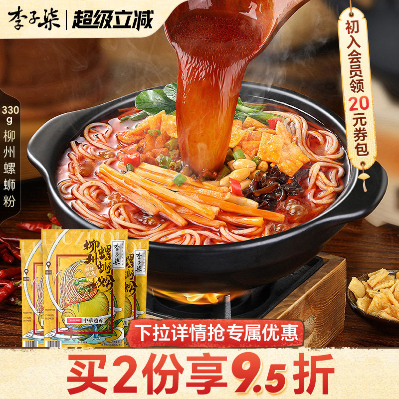 李子柒方便速食柳州螺蛳粉爆椒酸笋螺丝粉丝米线广西特产组合装