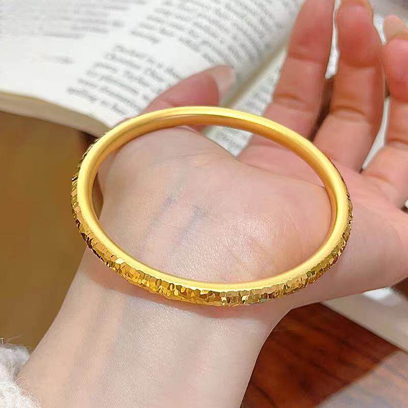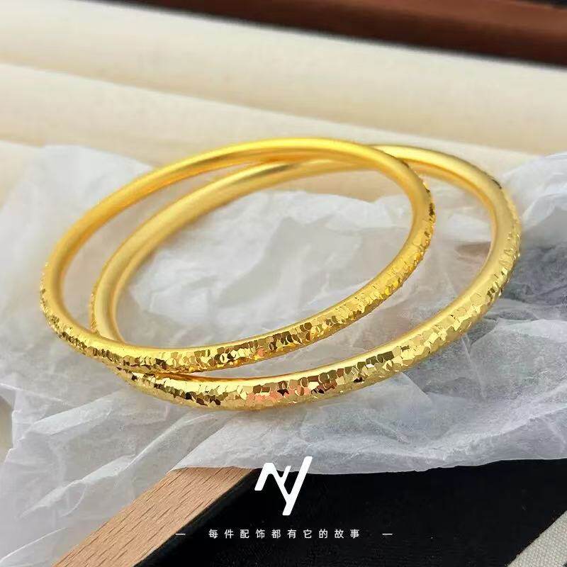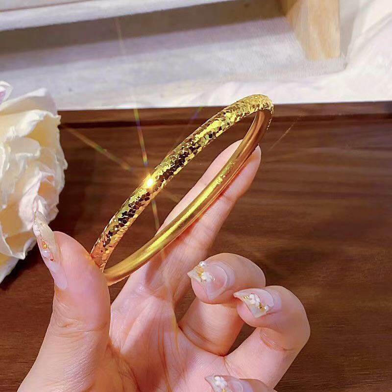 新款爆闪碎冰冰圆条手镯轻奢金店同款碎碎冰古法网红素圈手环圈口