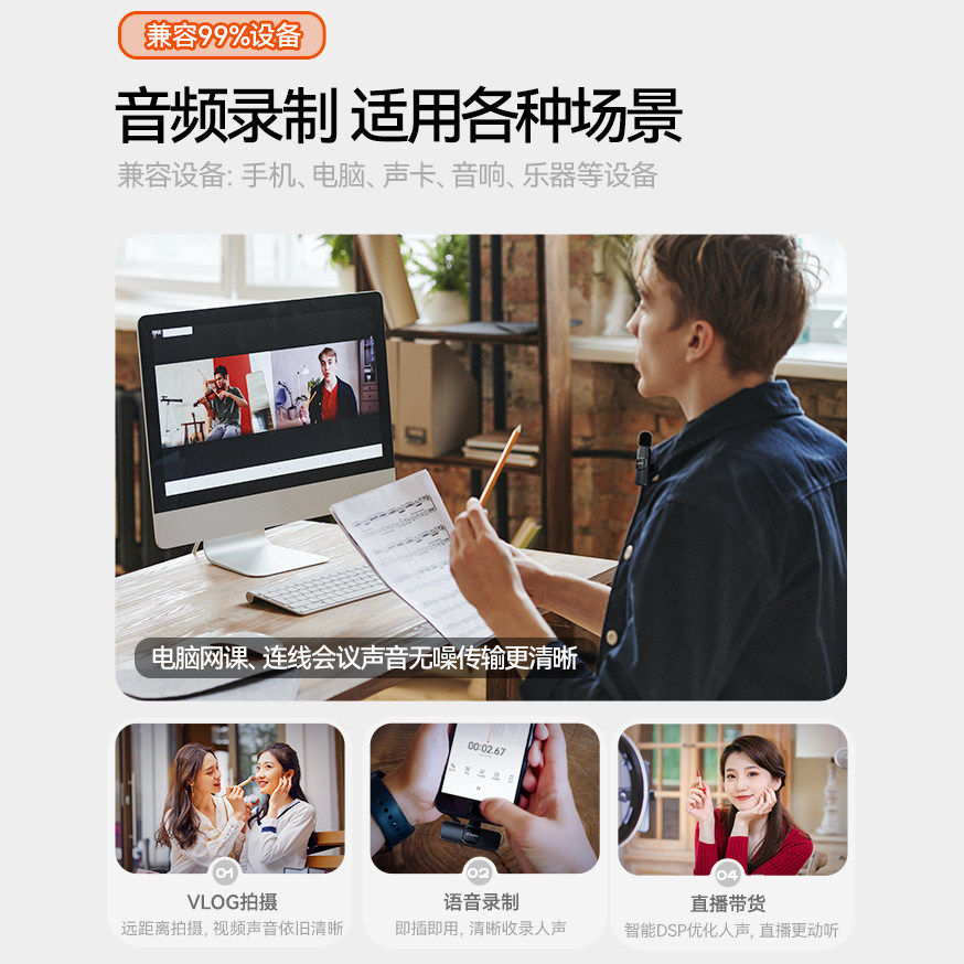 无线领夹式降噪麦克风无线迷你直播录音设备抖音短视频专用收音麦