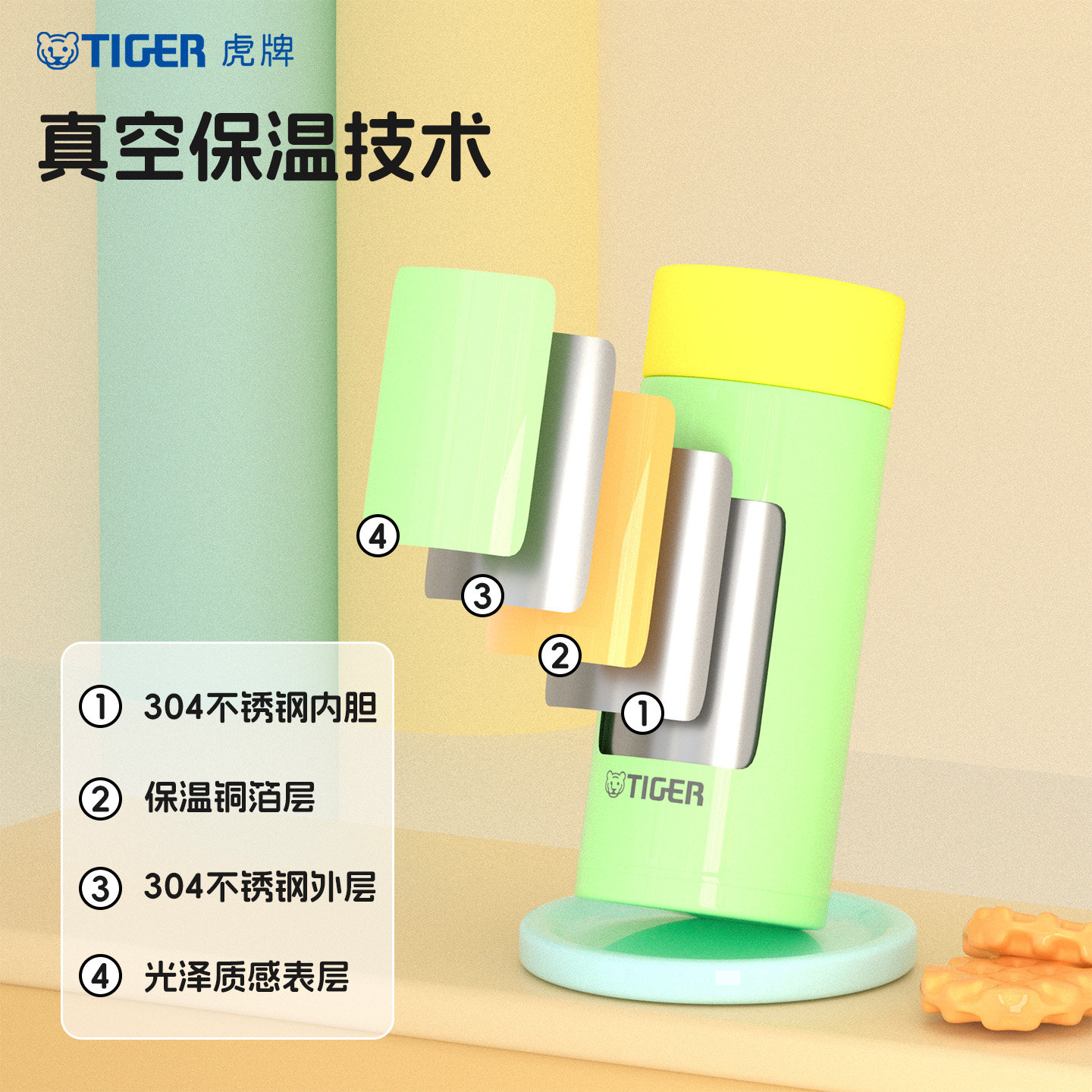 tiger虎牌保温杯多巴胺轻巧便携可爱迷你小清新水杯口袋杯女MOA-A