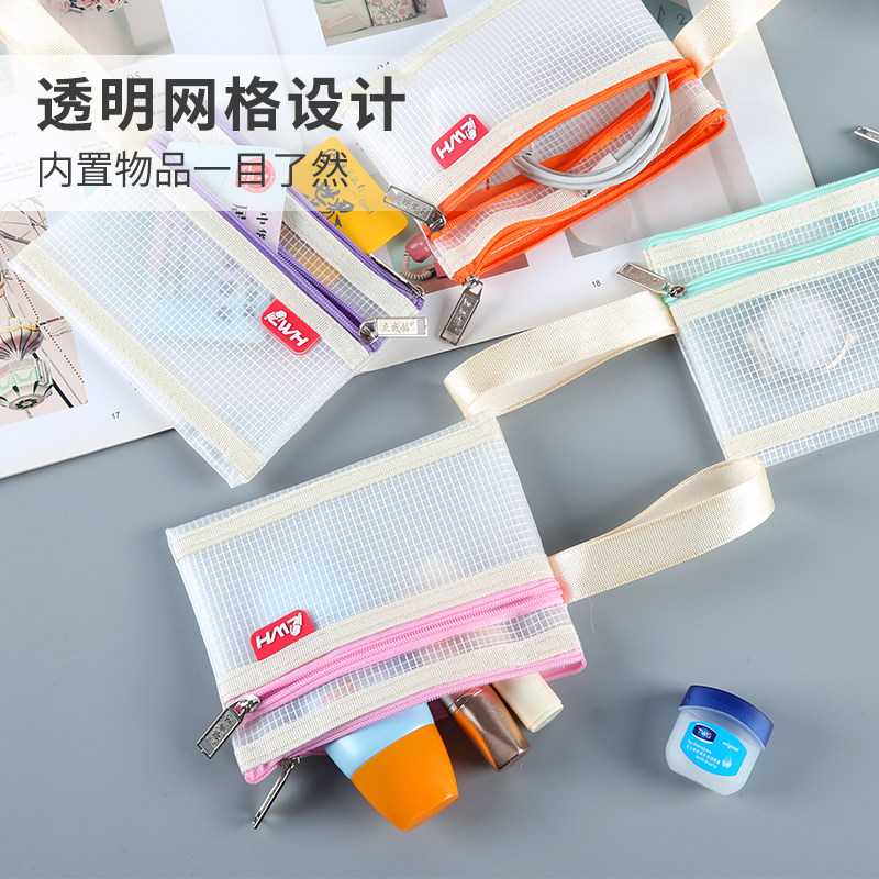 网格文件袋加厚透明网格拉链袋A4试卷收纳袋学生用考试文具袋防水笔袋办公用品批发公文档案袋资料袋包邮