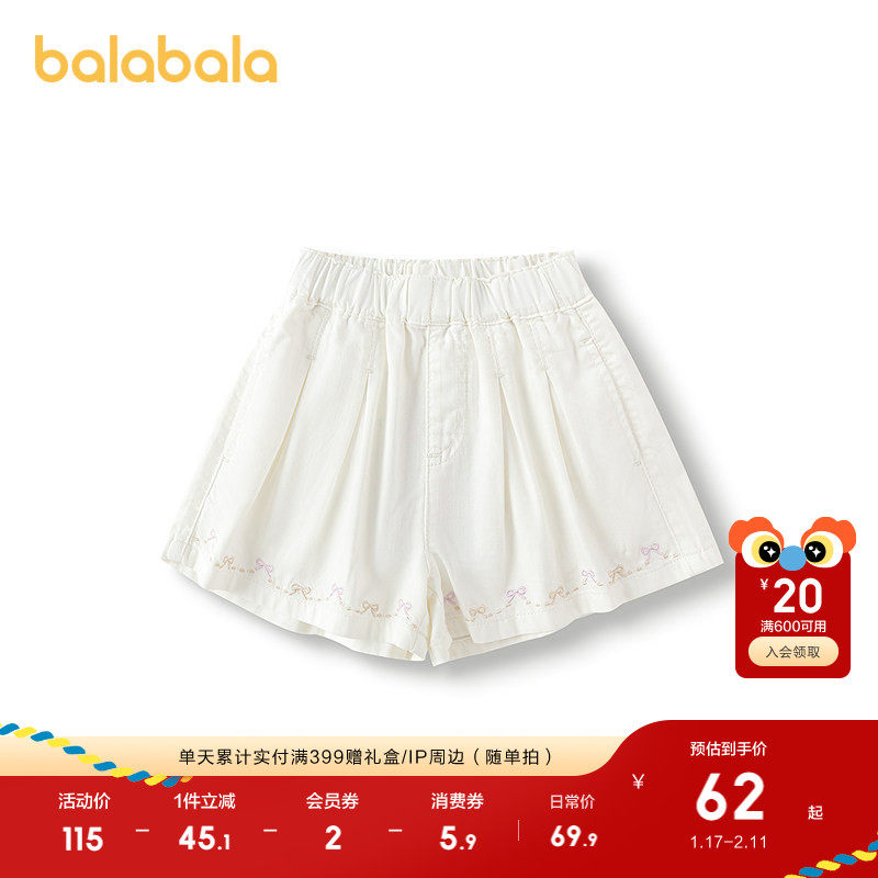 巴拉巴拉童装儿童短裤女童牛仔裤2025夏季新款A字裙裤蝴蝶结抑菌