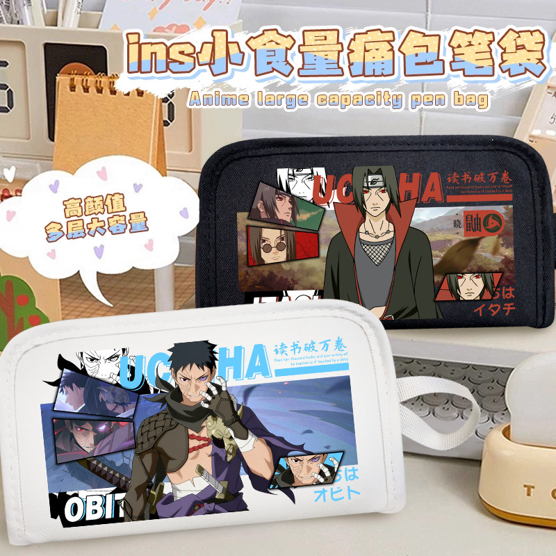 动漫火影忍者痛袋佐助鸣人鼬斑多隔层小学生笔袋透明小食量痛包