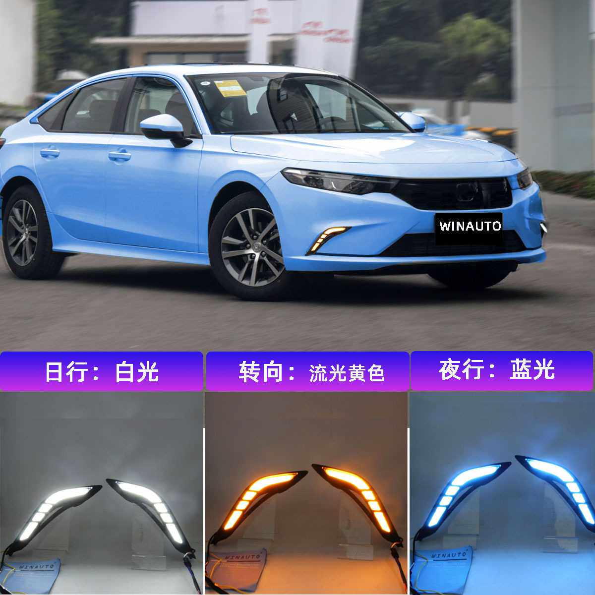 适用于型格2022带流光三色蓝光黄光改装前雾灯LED日行灯厂家直销