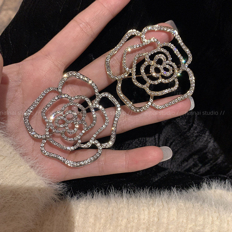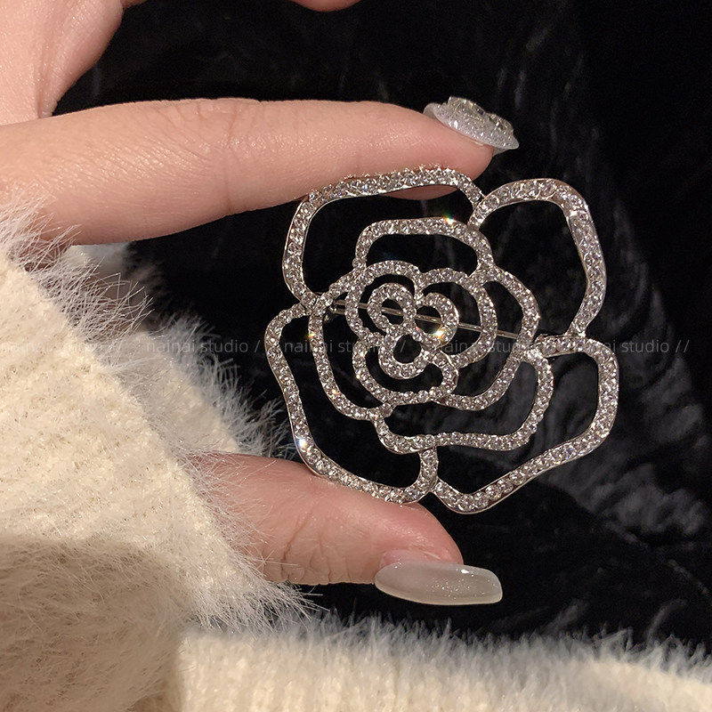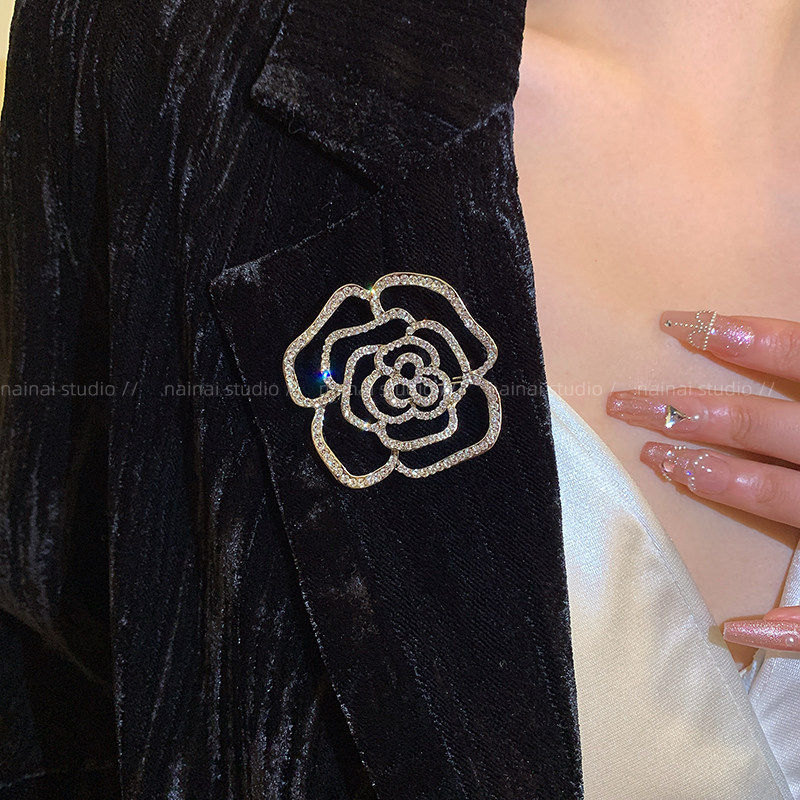 山茶花满钻胸针~小香风复古法式高级感胸花大衣外套西装别针配饰