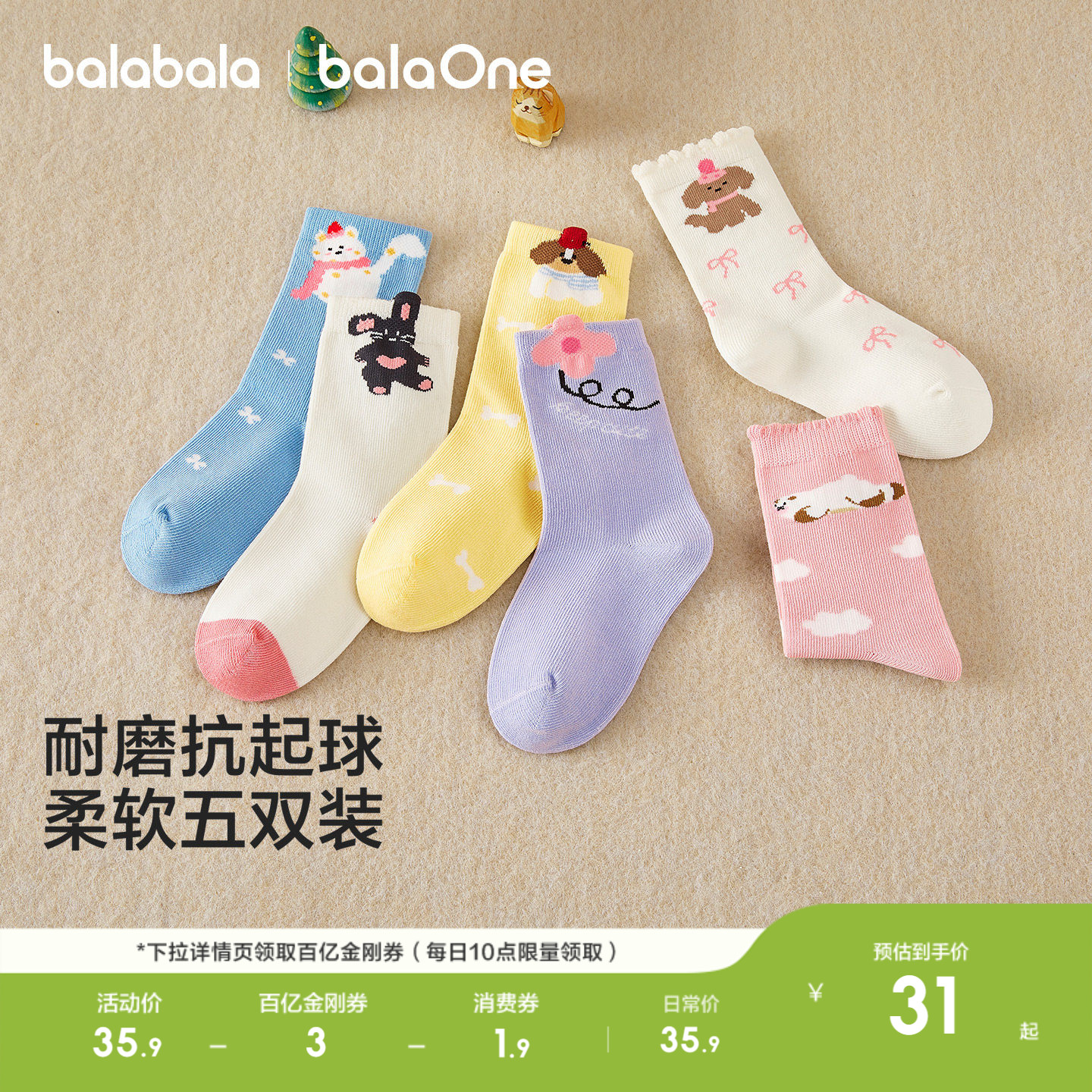 【balaOne】巴拉巴拉儿童袜子春秋女棉袜子儿童宝宝中大童五双装