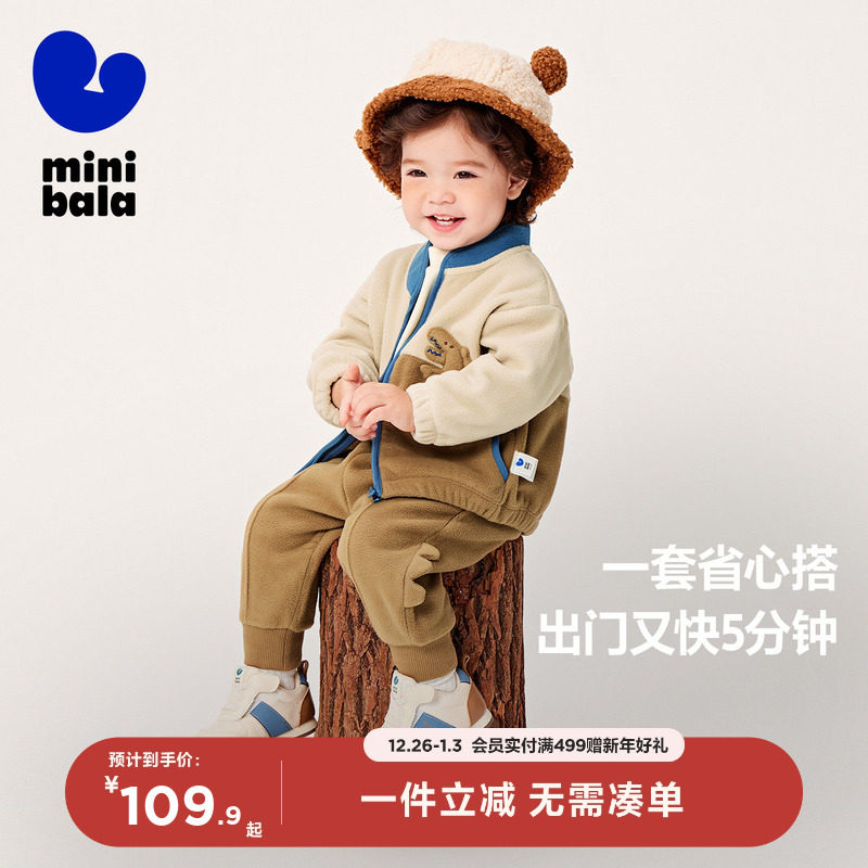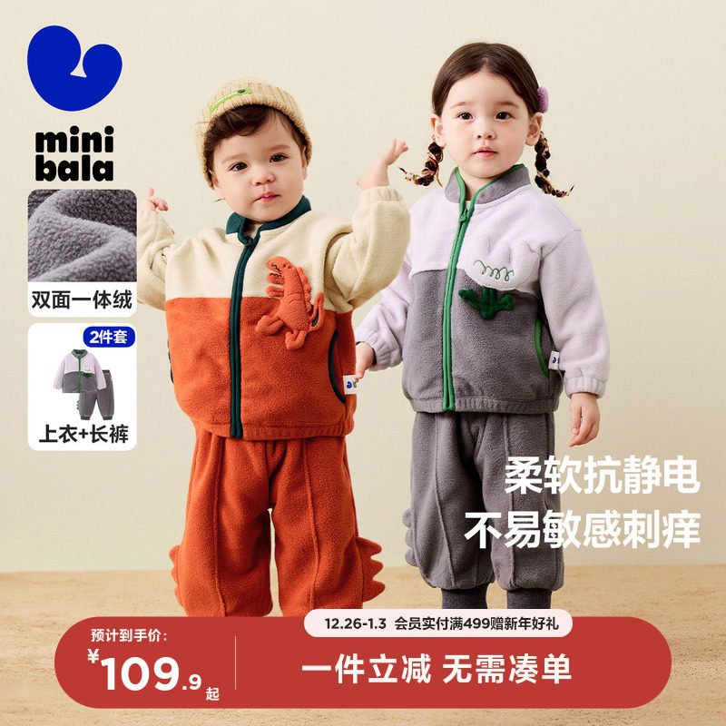 【净电绒】迷你巴拉巴拉长袖套装男女童宝宝抗静电早春新款外套