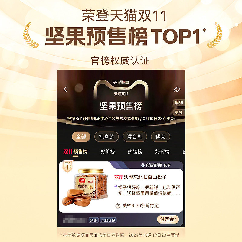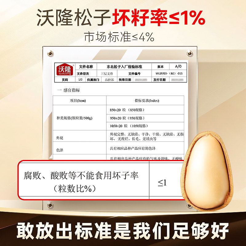 沃隆东北松子288g*2罐850级松子坚果炒货罐装
