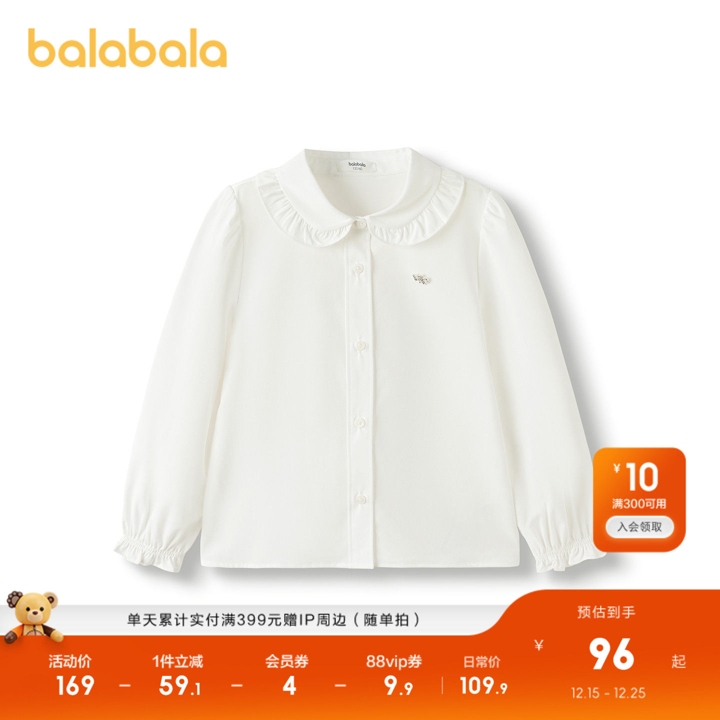 【商场同款】巴拉巴拉女童衬衫儿童长袖2025新款秋装舒适凉感抗菌