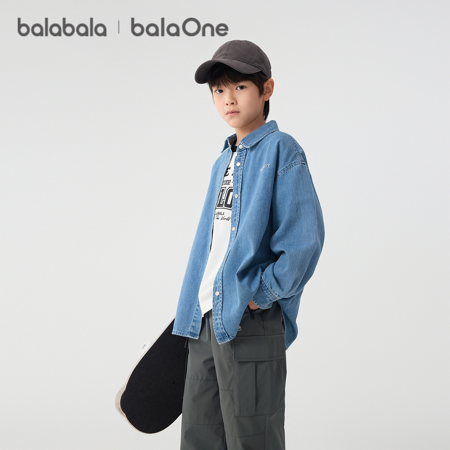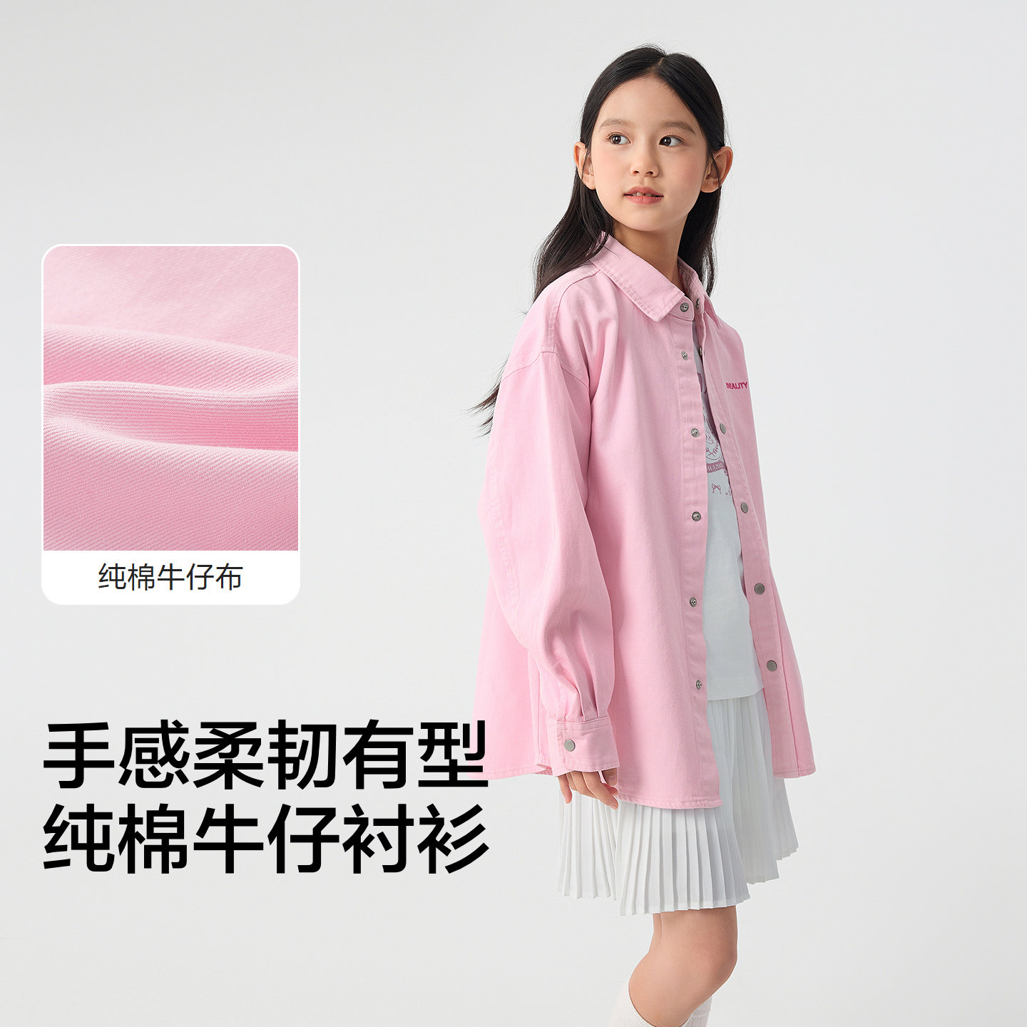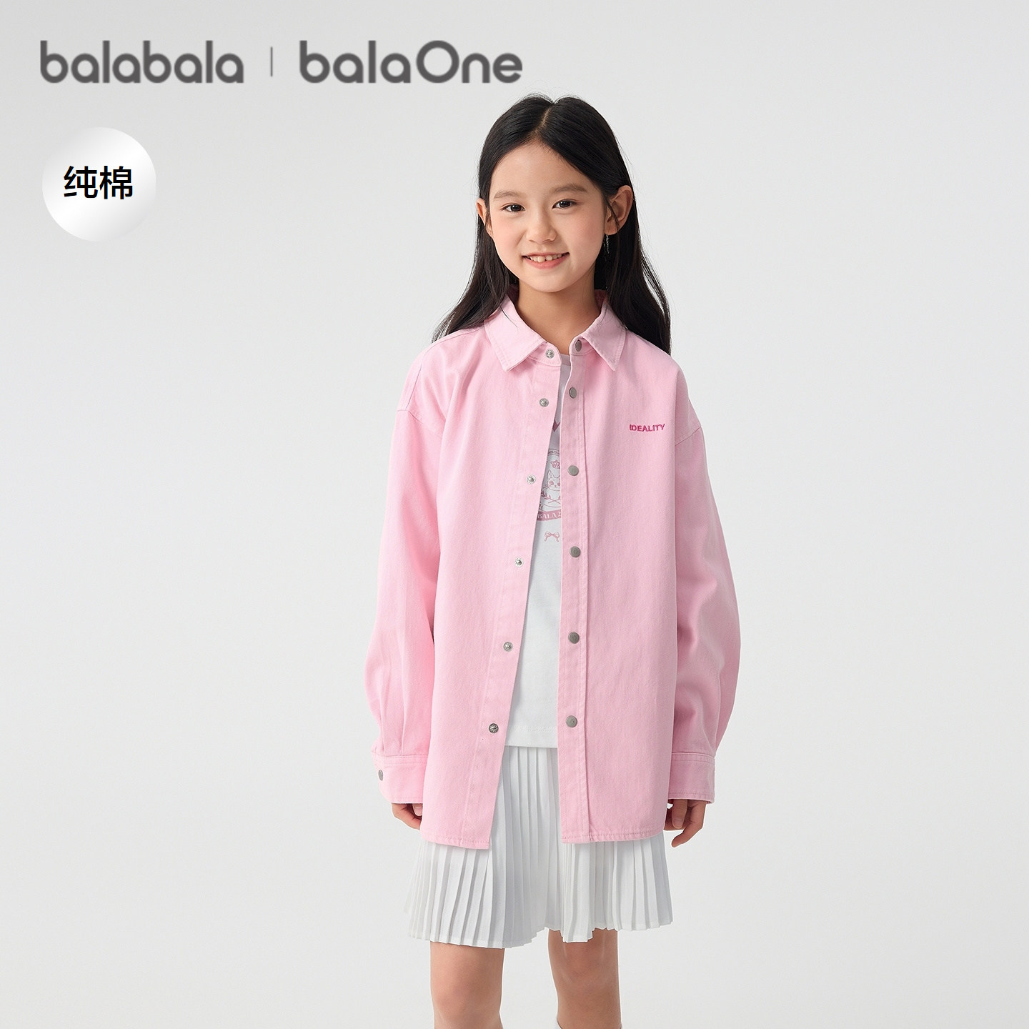 巴拉巴拉童装儿童长袖衬衫女童男童2026新款春装牛仔上衣纯棉舒适