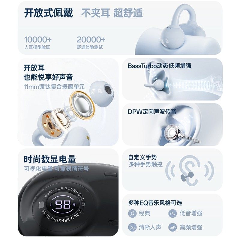 弱水时砂openfeel夹耳式蓝牙耳机挂耳HIFi运动跑步开放式专用耳机