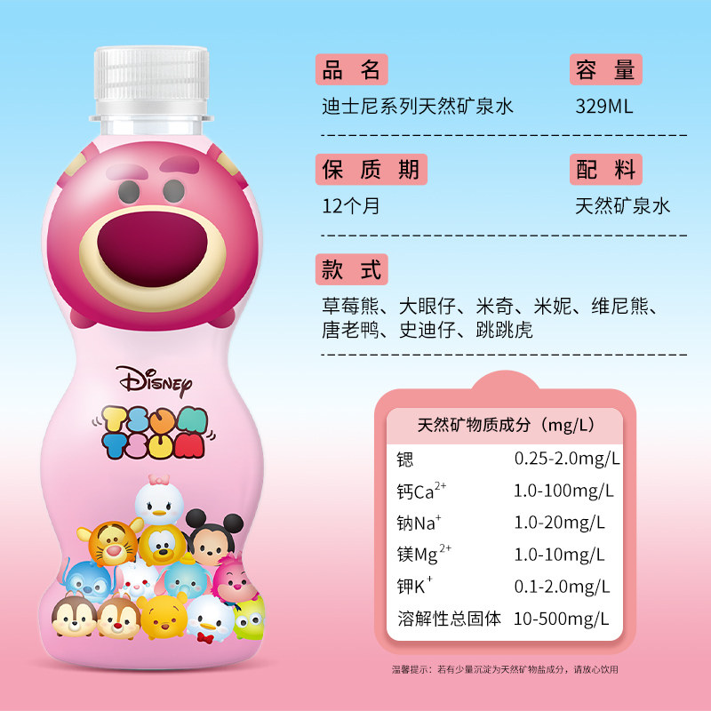可爱草莓熊迪士尼系列天然矿泉水家庭儿童饮用水非纯净整箱小瓶水