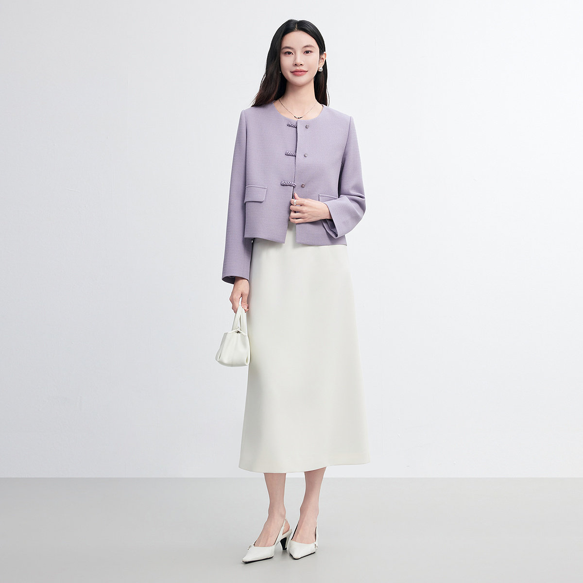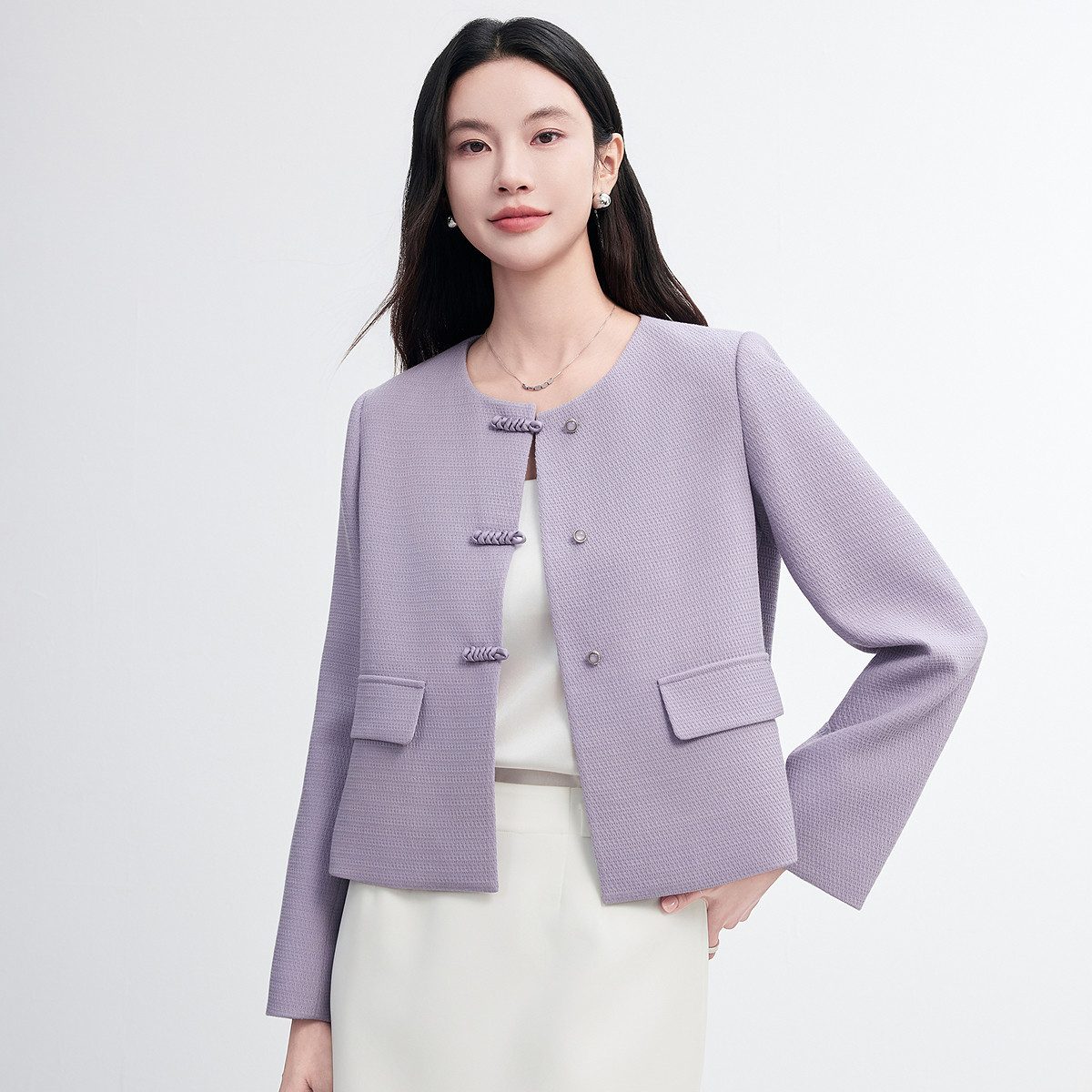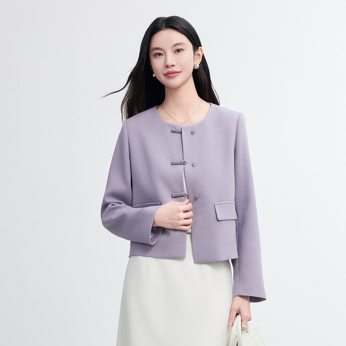 FINITY菲妮迪短外套2026春新款紫色轻熟气质小香风短款外套上衣女