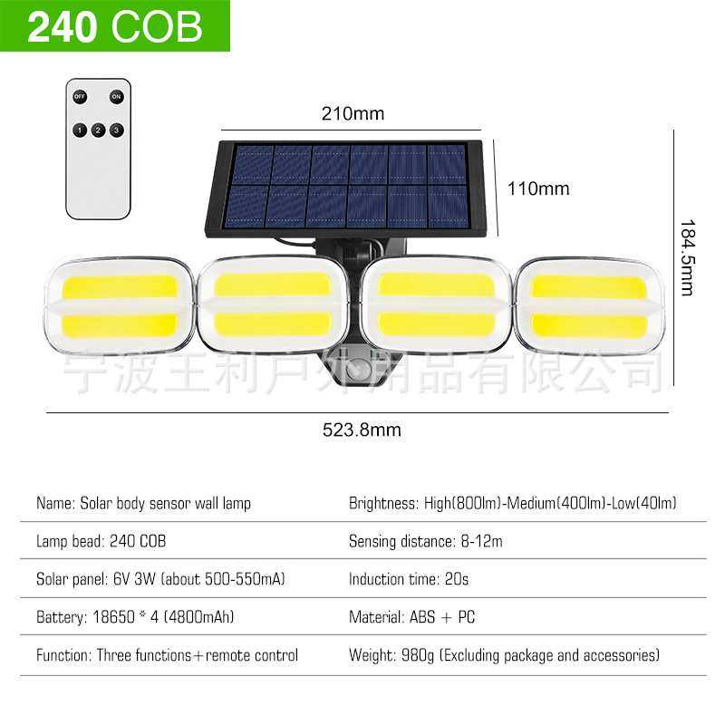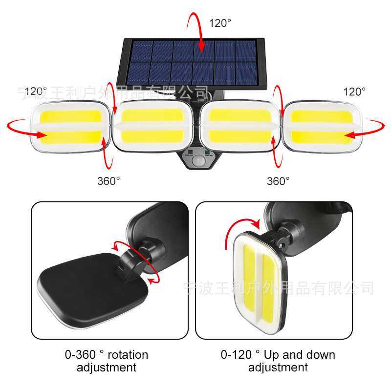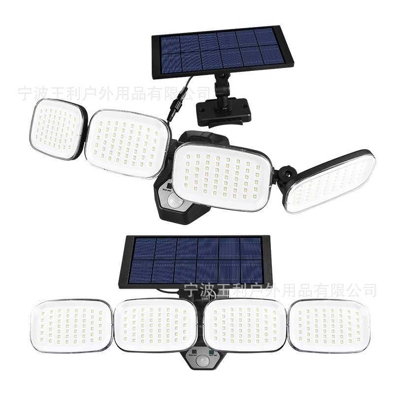 新款太阳能壁灯四头可旋转户外防水人体感应庭院灯围墙道路照明灯