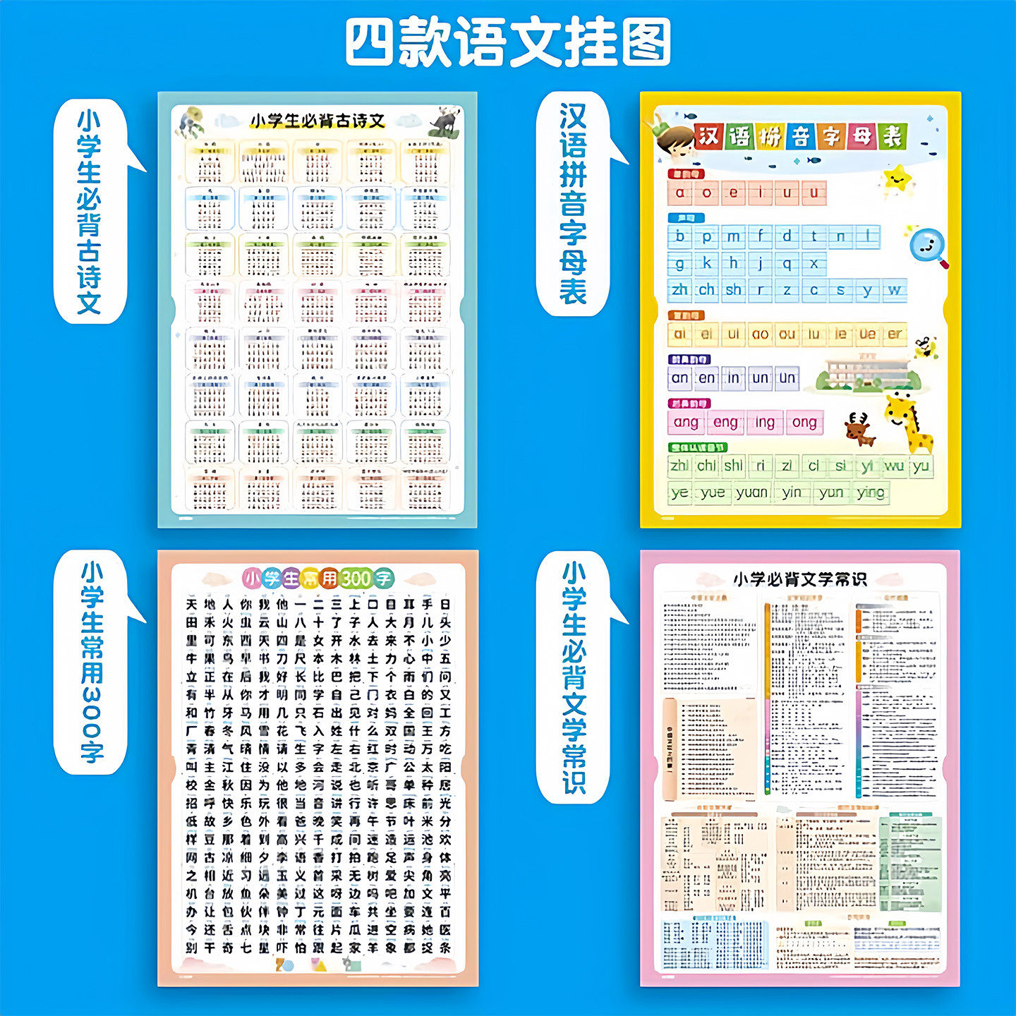 9张儿童学习挂图拼音字母古诗乘除加减口诀表XB汉语认读整体乘法